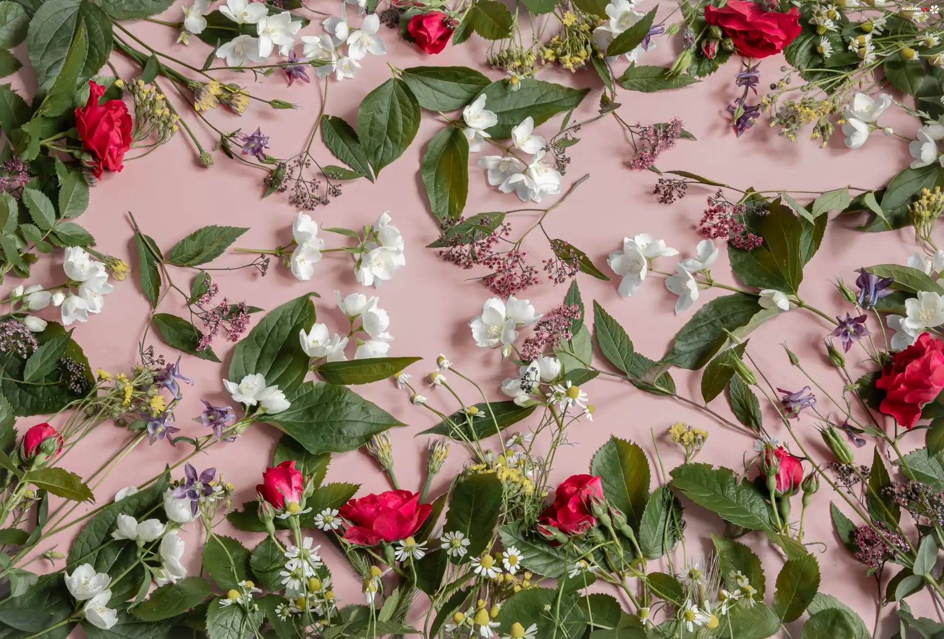 Kwiat Kwiaty, Czerwone, Róże, Liście, Różowe, Tło
