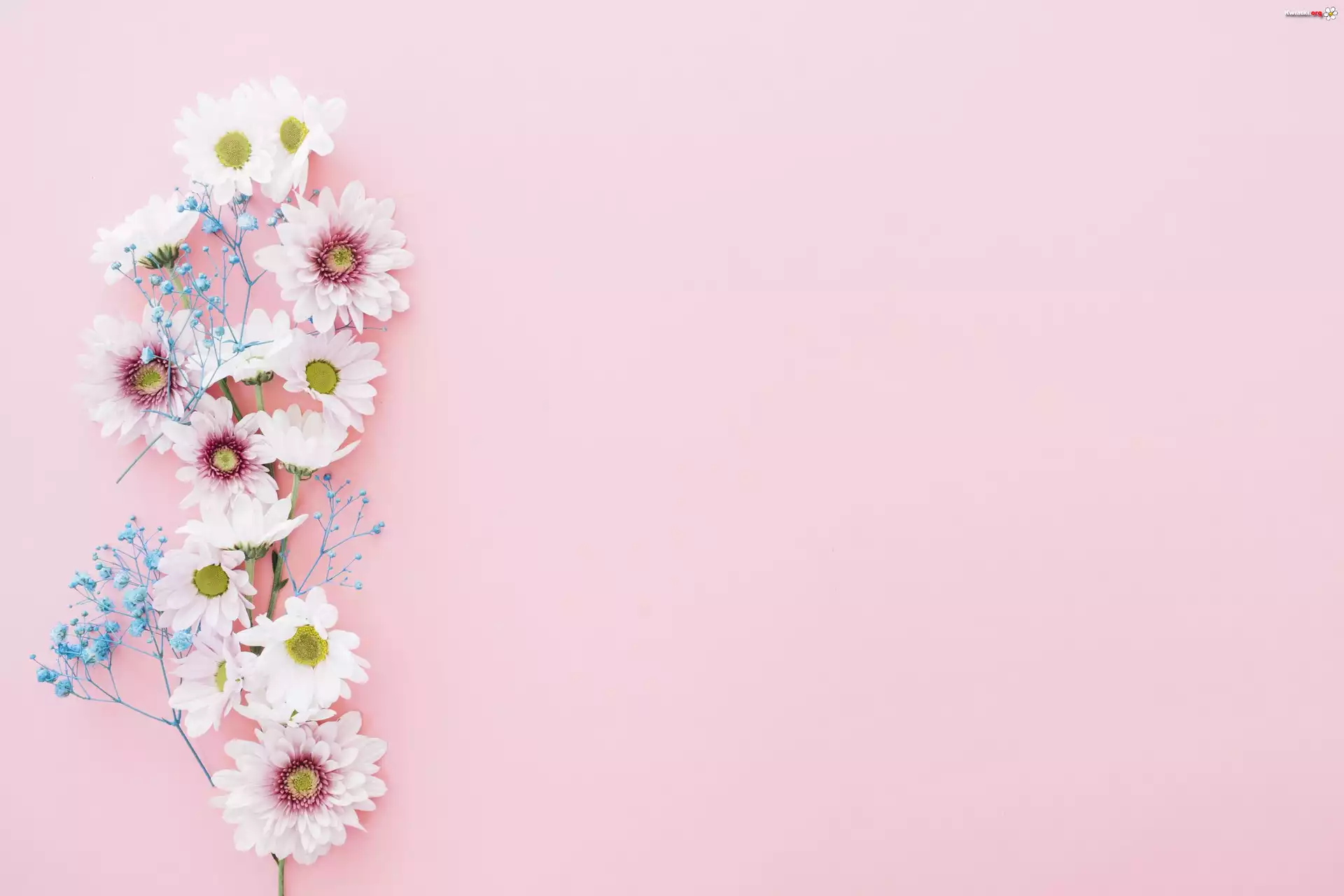Kwiat Kwiaty, Białe, Stokrotki, Gipsówka, Różowe, Tło