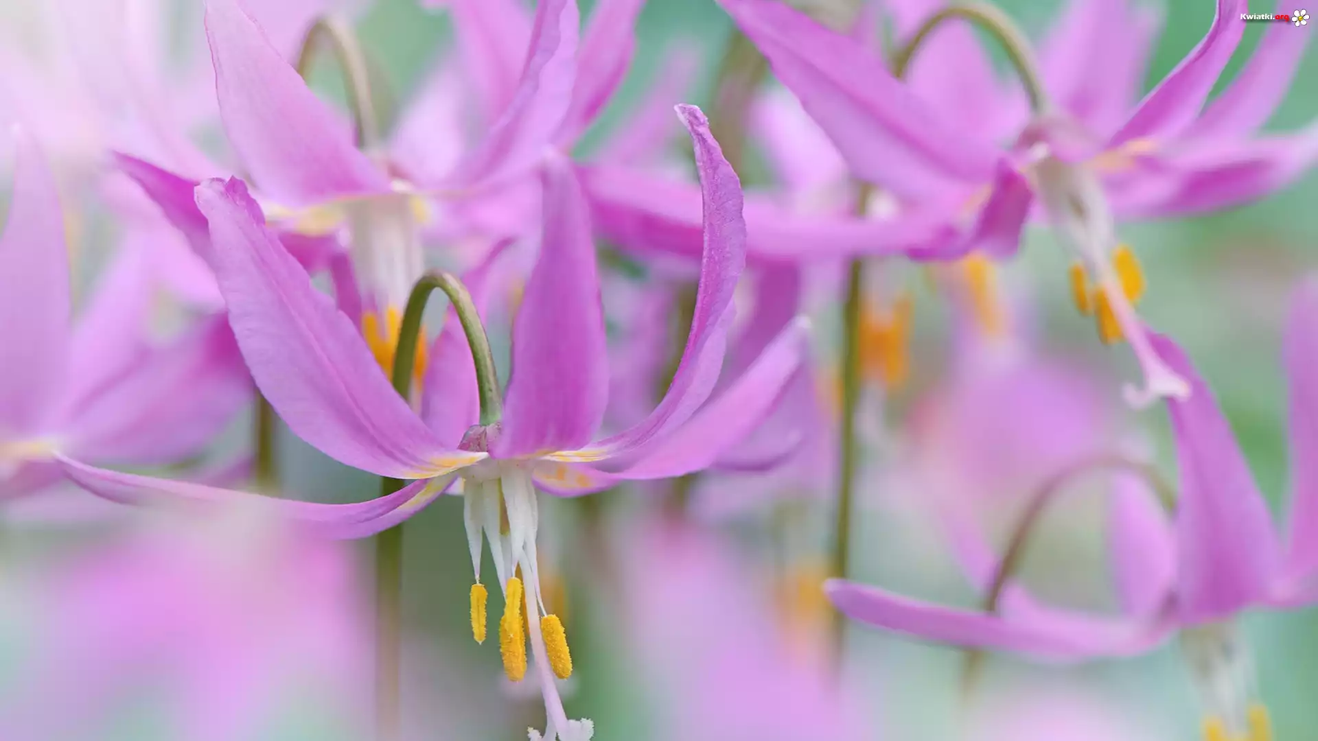 Różowe, Kwiaty, Psiząb wywinięty, Pręciki, Rozmyte, Tło - Zdjęcia