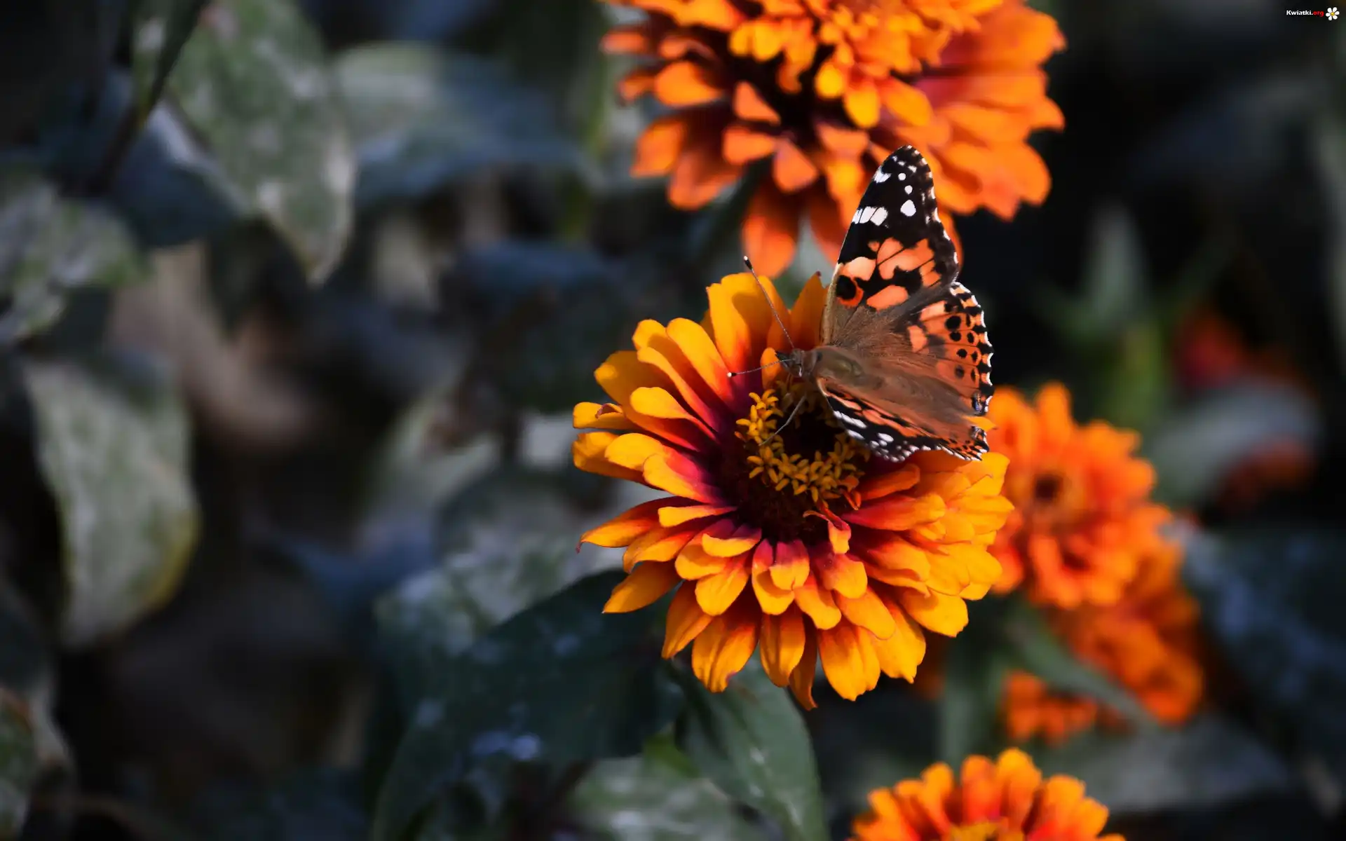 Kwiaty, Cynie, Motyl, Rusałka osetnik - Zdjęcia