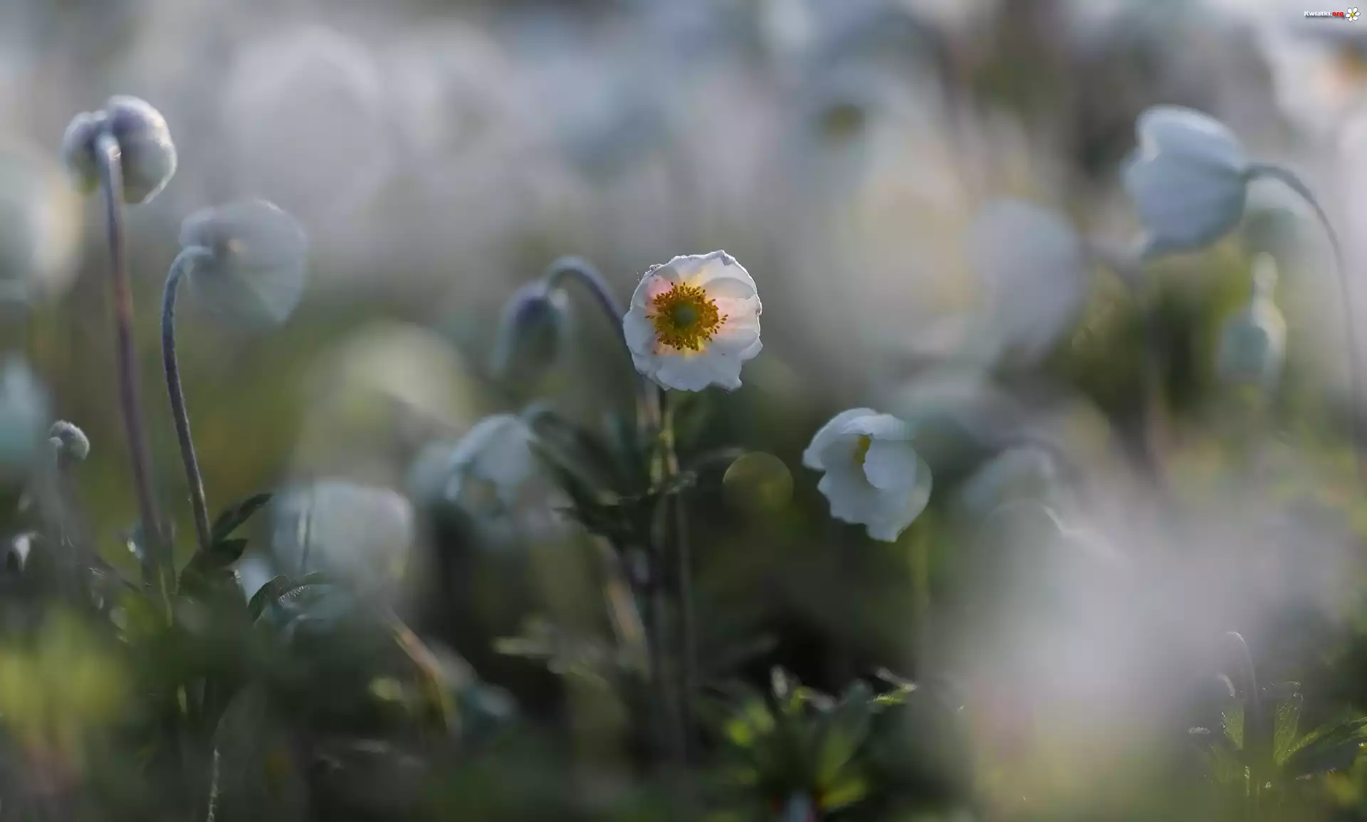 Kwiaty, Białe, Sasanki, Rozmycie - Zdjęcia