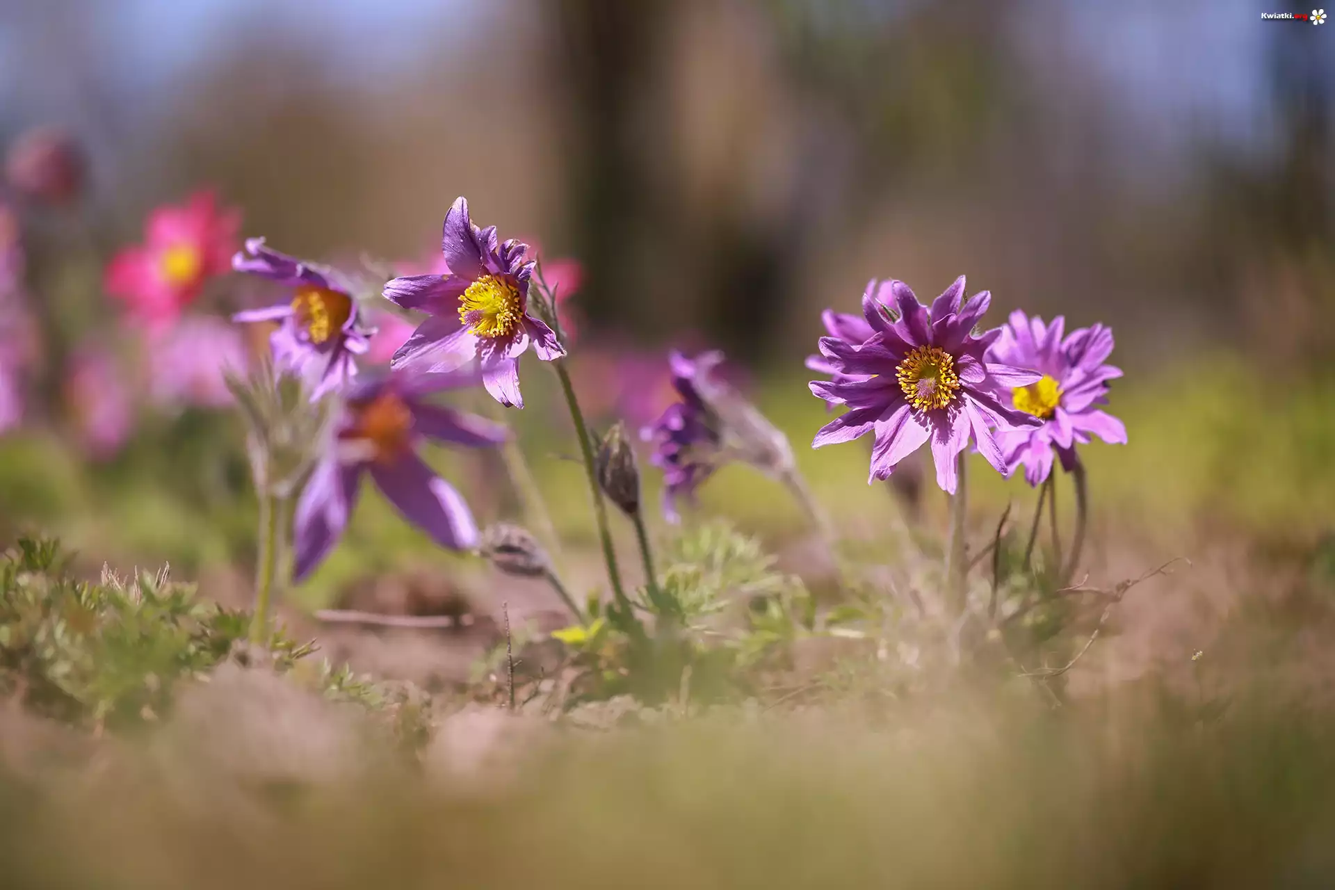 Sasanki, Rozświetlone, Fioletowe, Kwiaty - Zdjęcia
