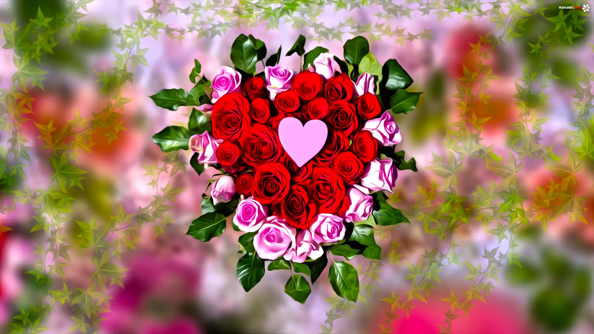 Kwiaty, Róże, Serce, Grafika - Zdjęcia