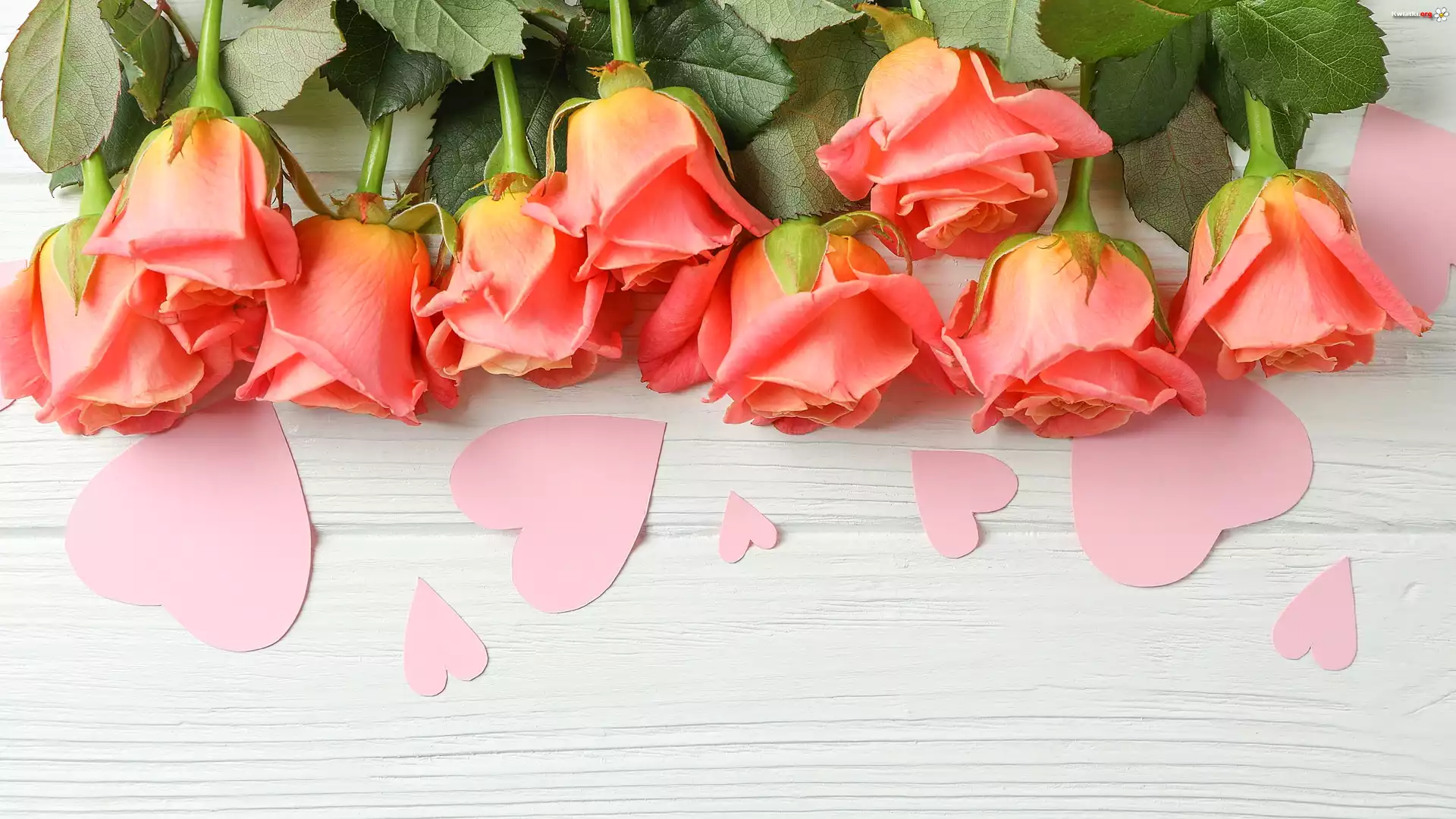 Kwiaty, Róże, Serduszka, Deski - Zdjęcia
