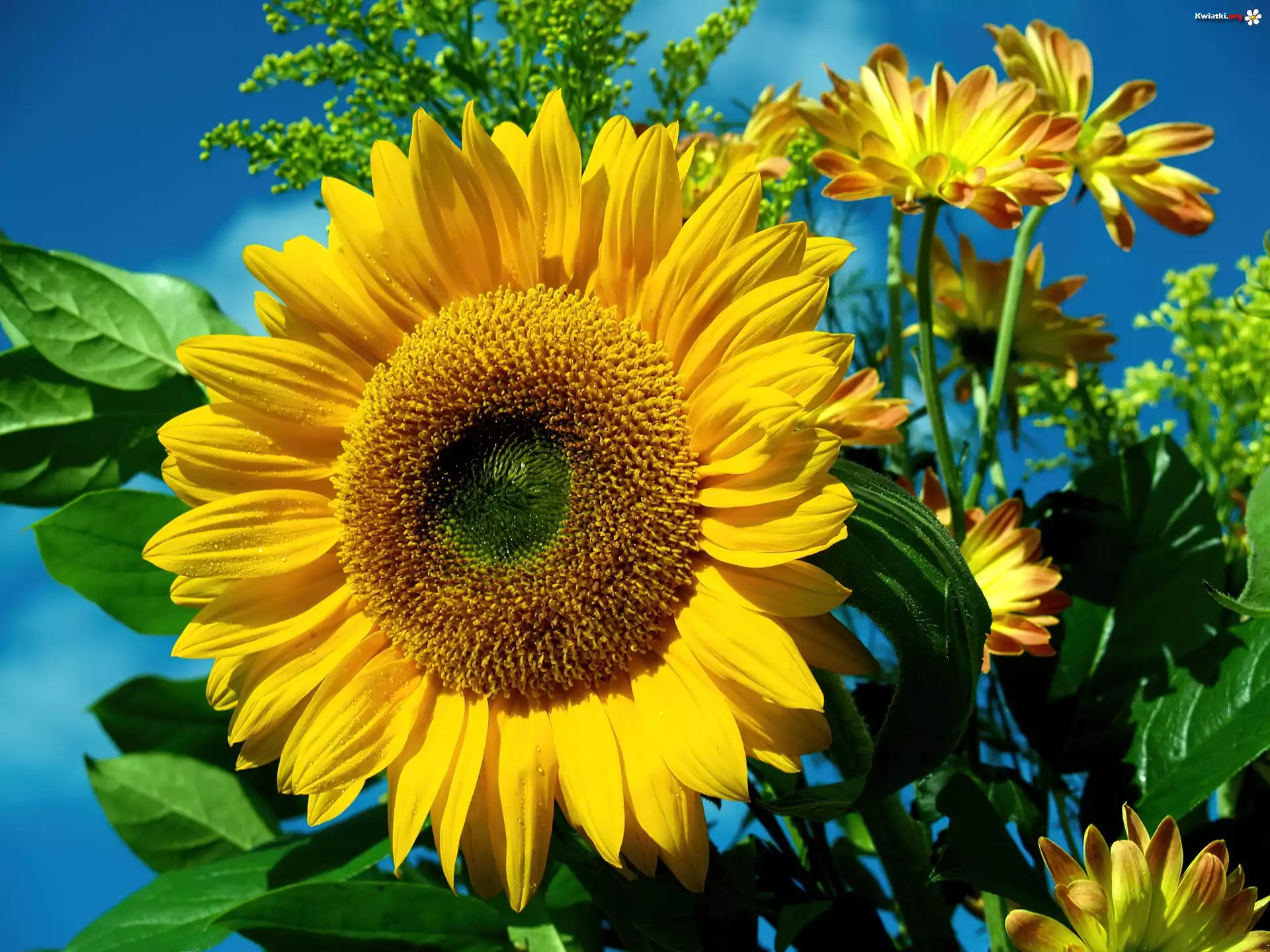 Słonecznik, Kwiaty, Listki - Zdjęcia