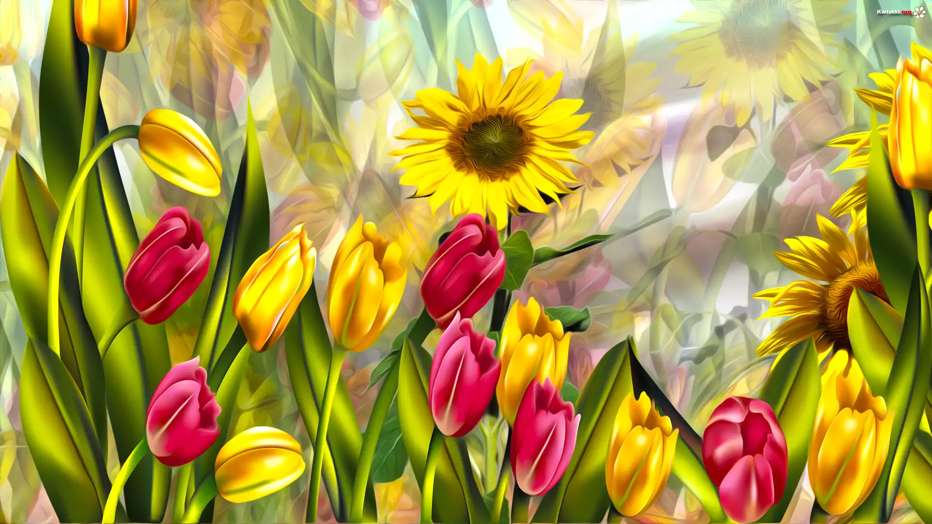 Kwiaty, Tulipany, Słoneczniki, Grafika - Zdjęcia