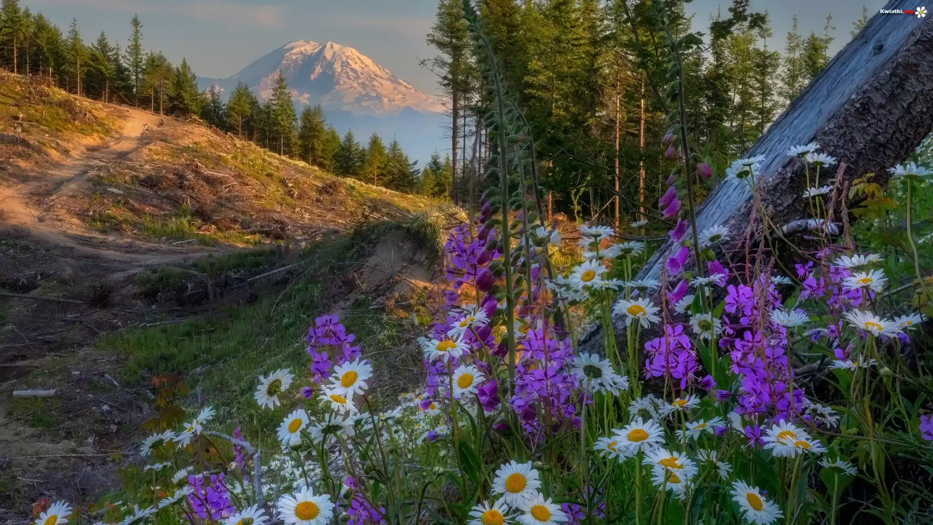 Kwiaty, Drzewa, Góry, Szczyt West Tiger, Stan Waszyngton, Stany Zjednoczone - Zdjęcia