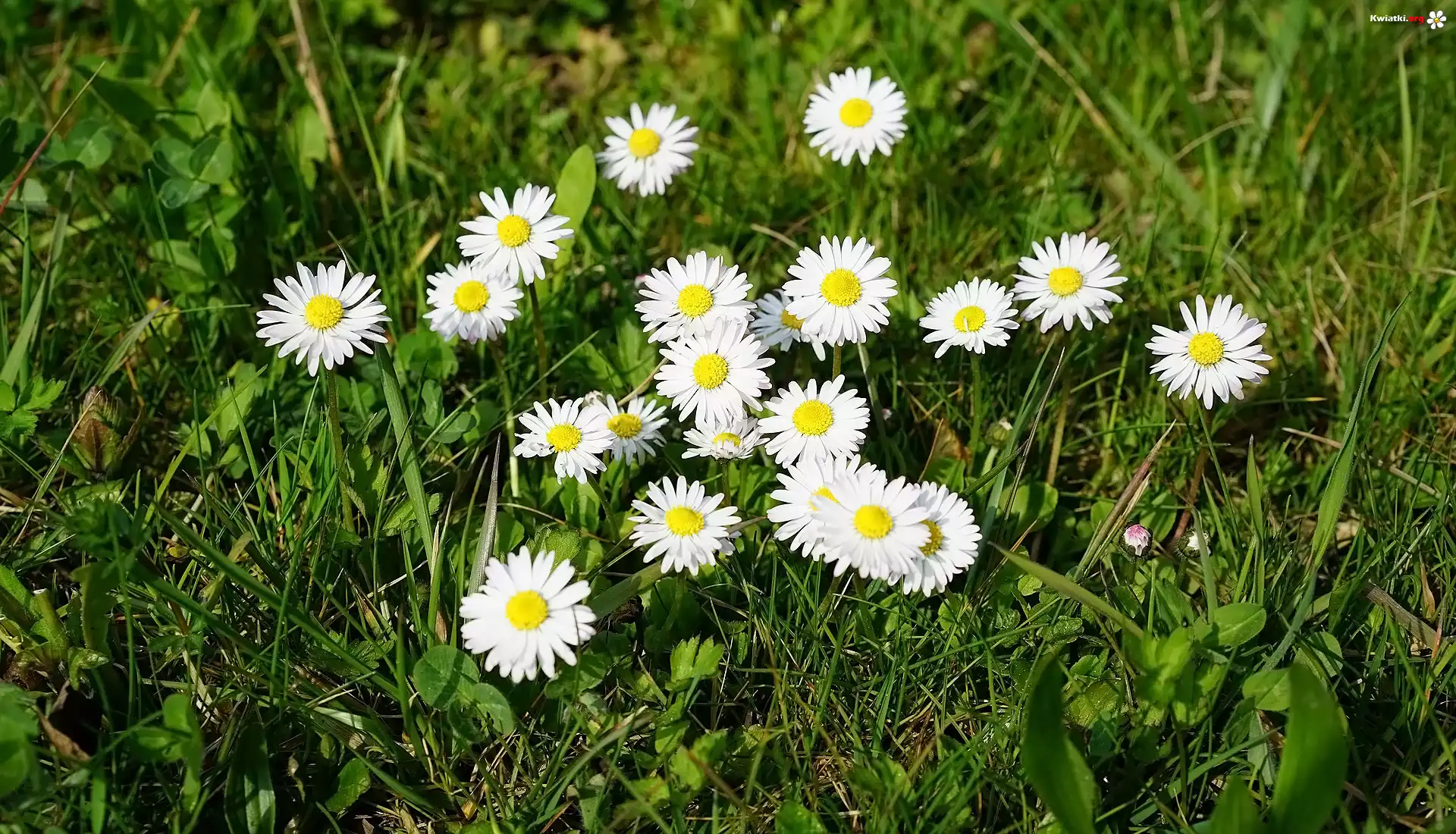 Kwiaty, Rozwinięte, Stokrotki, Trawa - Zdjęcia