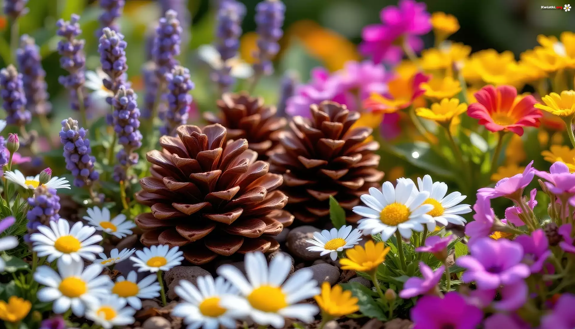 Kwiat Kolorowe, Kwiaty, Stokrotki, Lawenda, Szyszki
