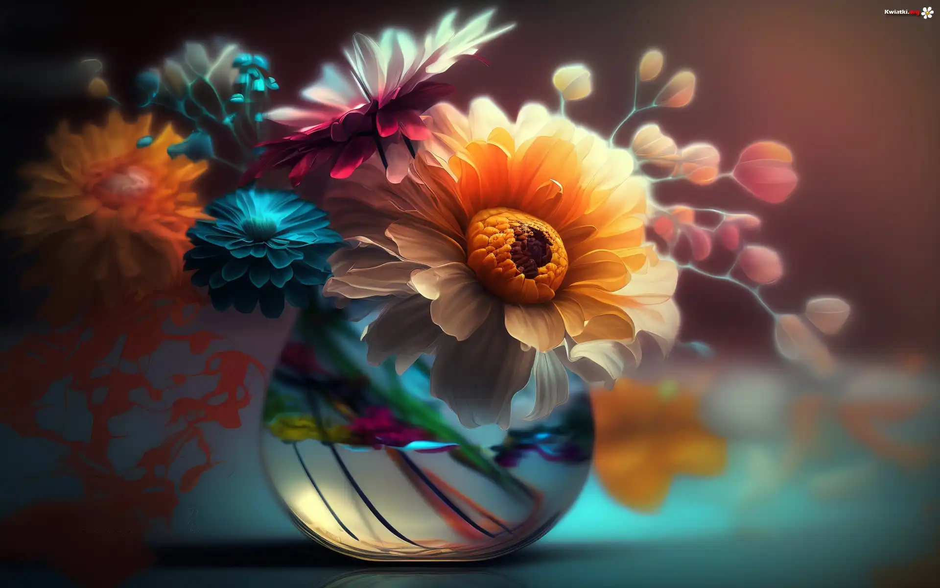 Kolorowe, Kwiaty, Szklany, Wazon, Grafika - Zdjęcia
