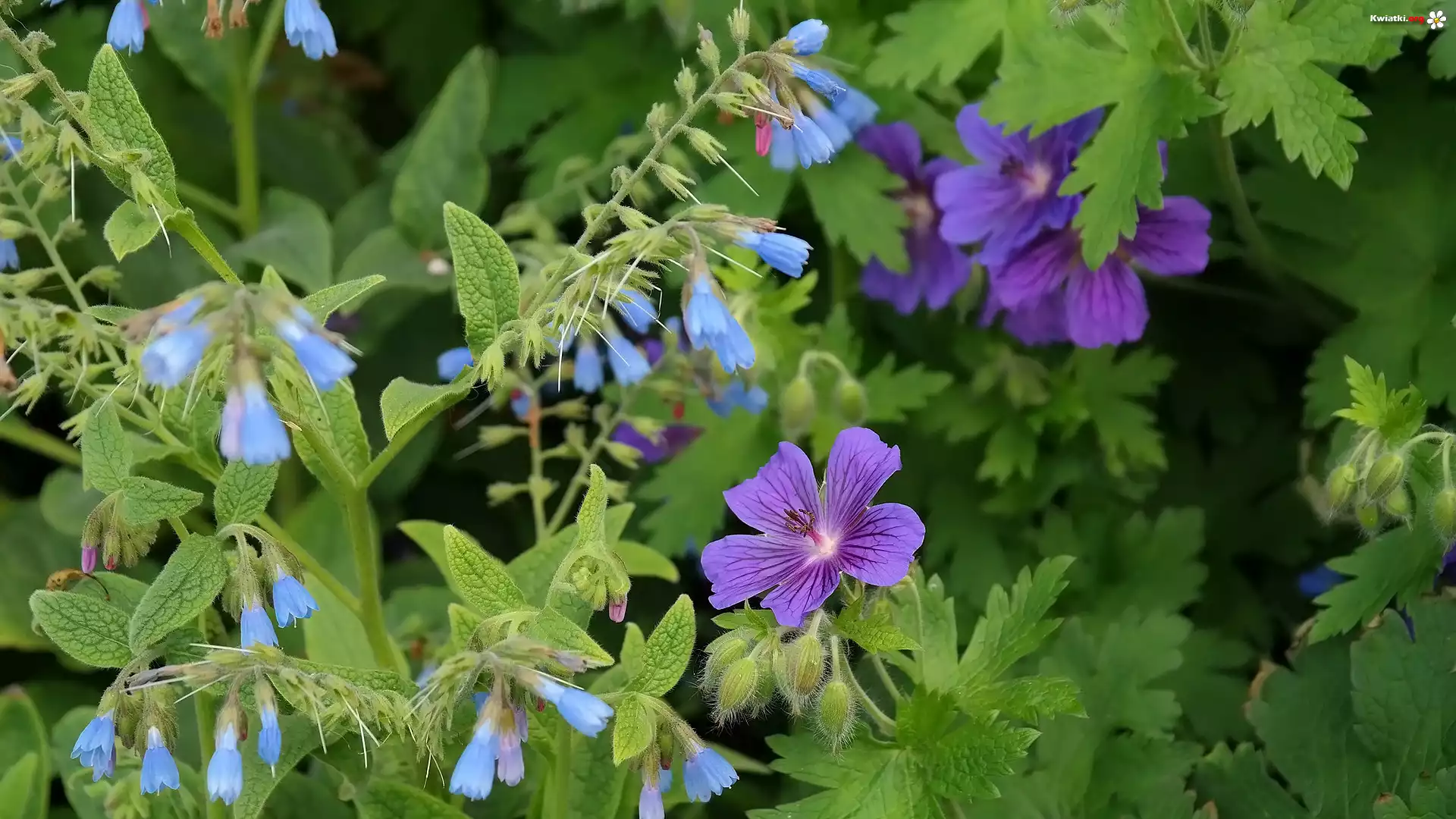 Kwiat Kwiaty, Bodziszek, Żywokost szorstki, Listki
