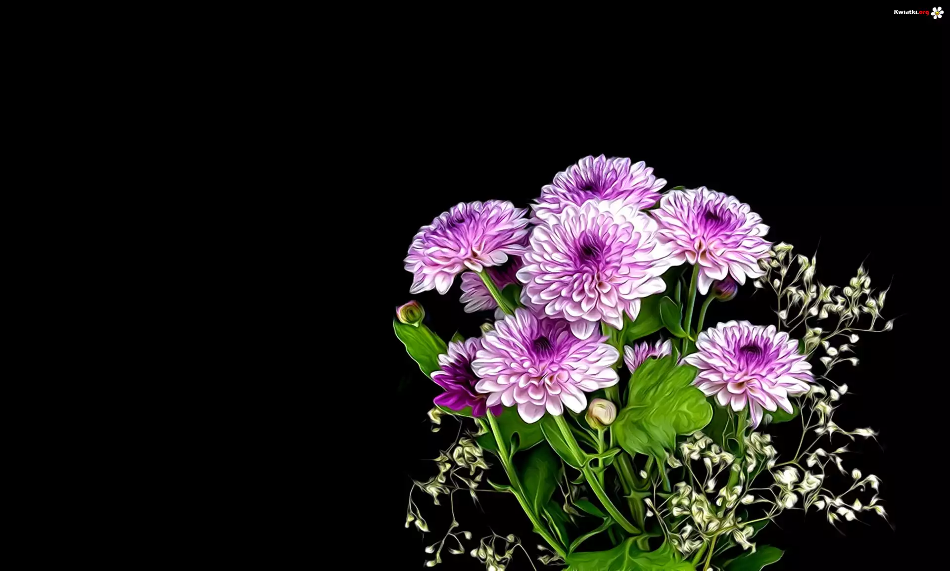 Kwiaty, Chryzantemy, Czarne, Tło, Grafika - Zdjęcia