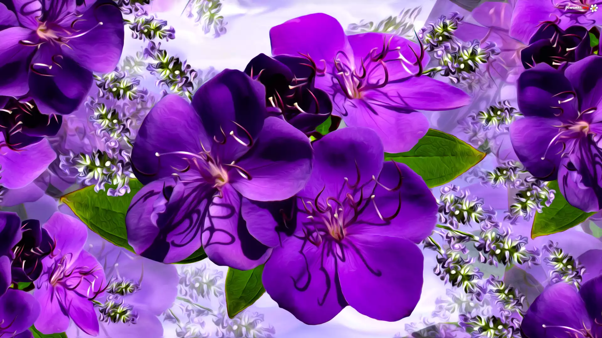Kwiaty, Fioletowe, Kolorowe tło, Grafika - Zdjęcia