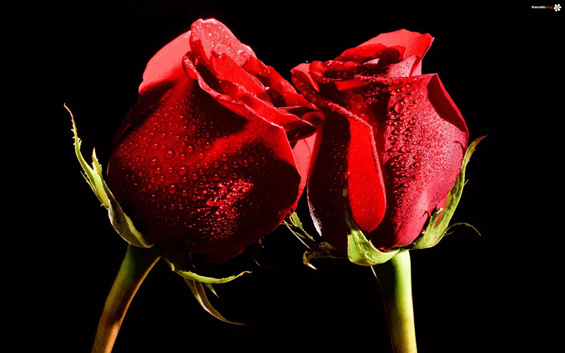 Kwiaty, Czerwone, Róże, Tło czarne - Zdjęcia