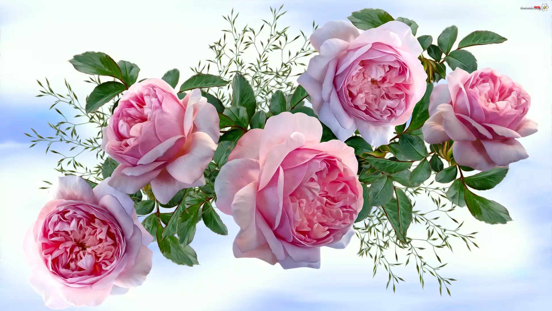 Kwiaty, Różowe, Róże, Jasne tło, Grafika - Zdjęcia