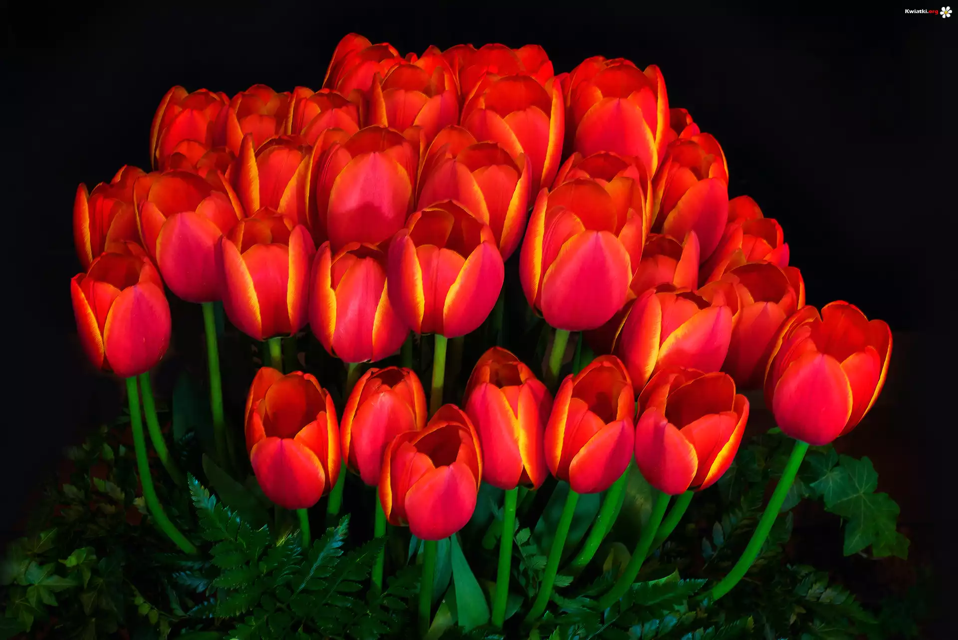Kwiat Kwiaty, Bukiet, Tulipany, Tło ciemne
