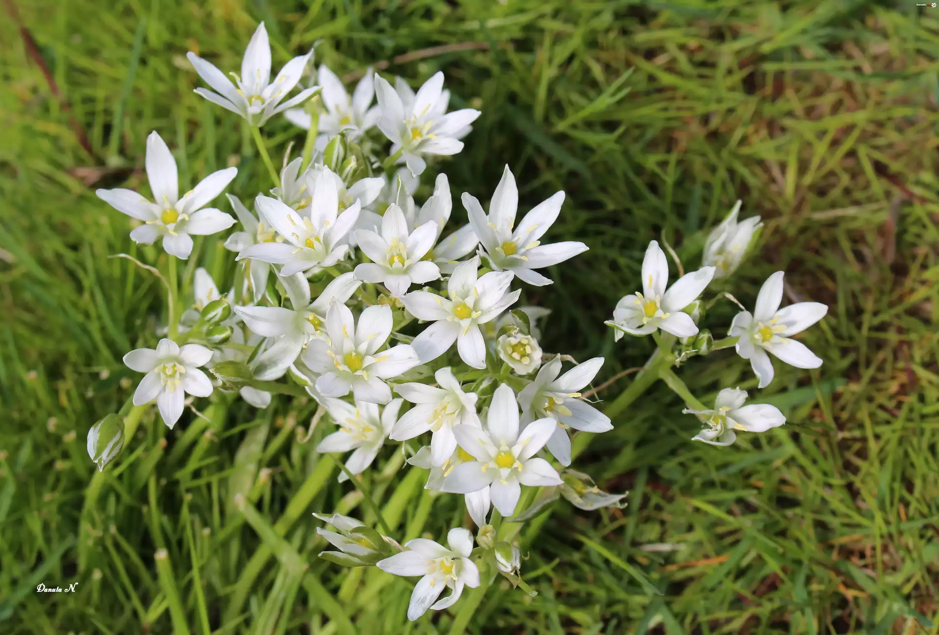 Kwiaty, Białe, Trawa, Śniedek - Zdjęcia