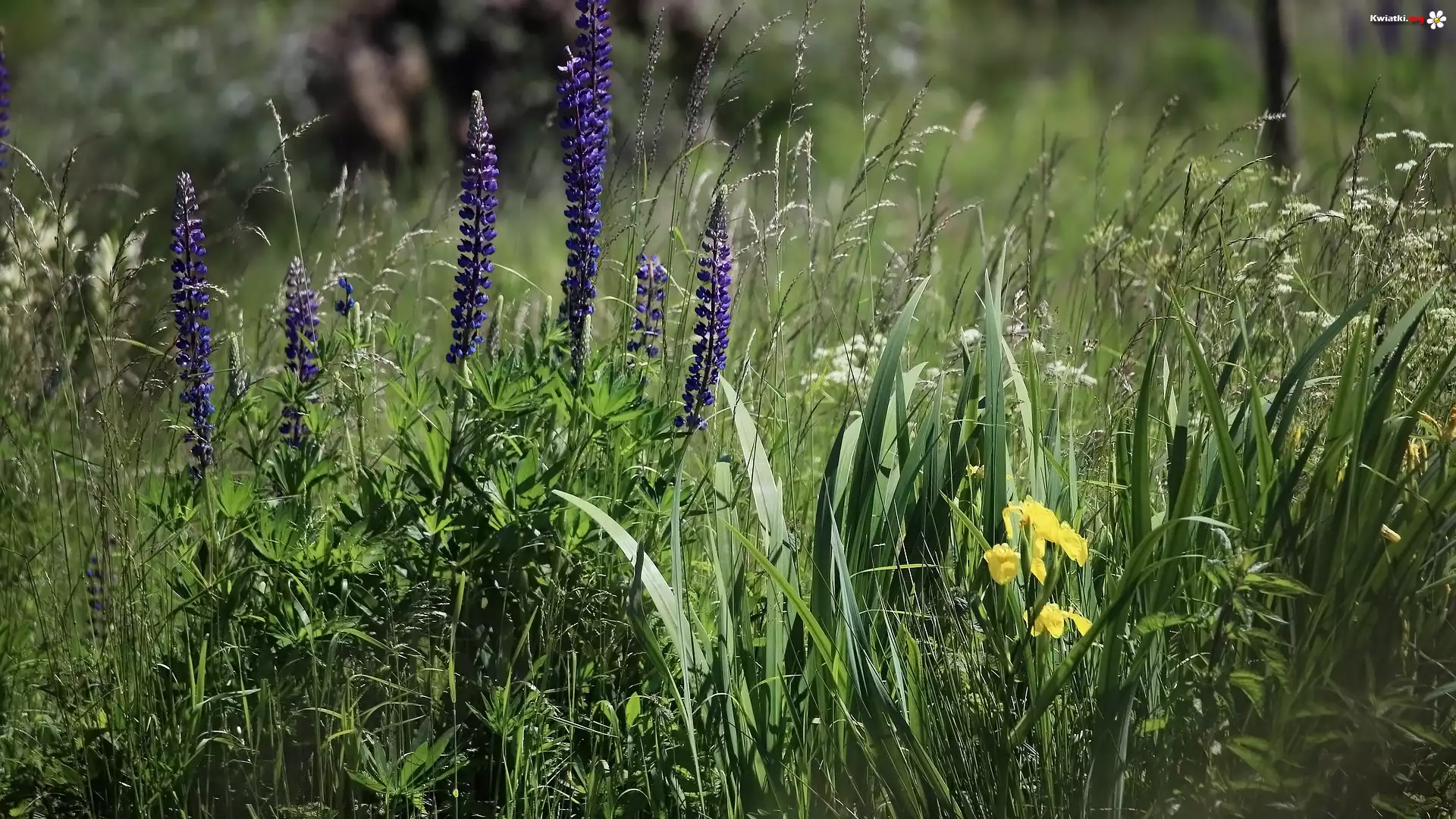Kwiat Kwiaty, Łubiny, Trawa