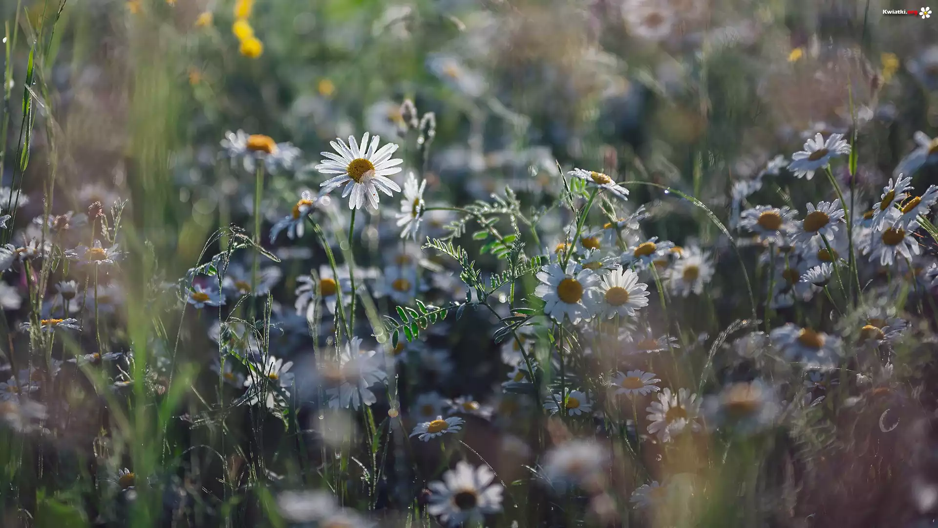 Kwiaty, Rumianki, Trawa, Łaka - Zdjęcia