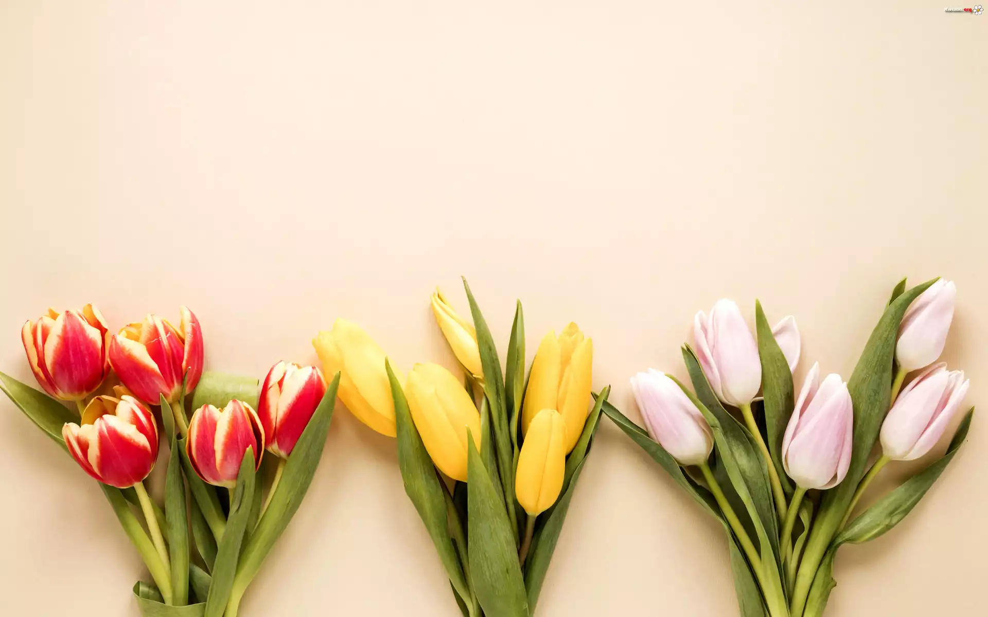 Kwiaty, Kolorowe, Tulipany, Trzy, Bukiety - Zdjęcia