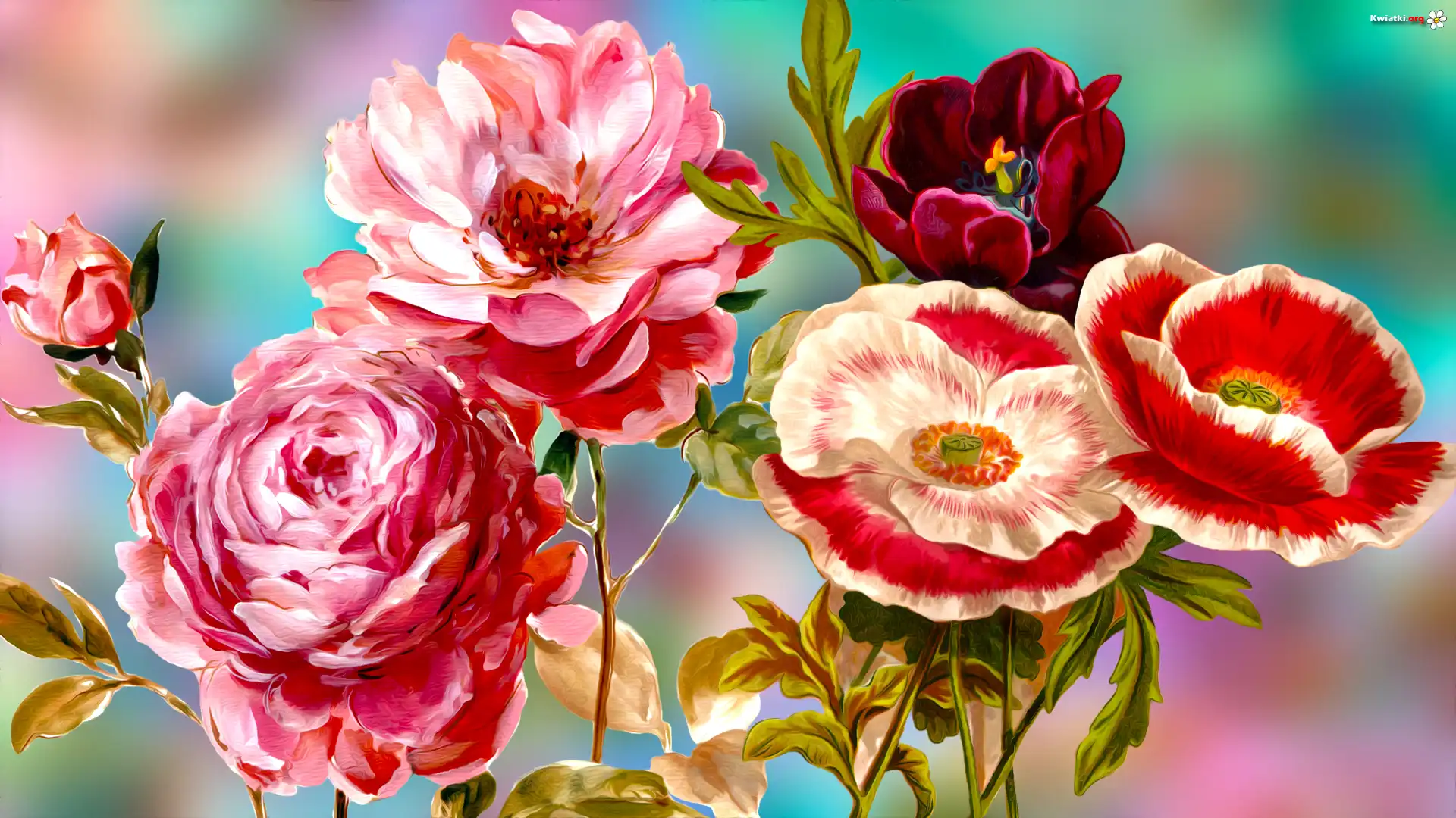 Kwiaty, Róże, Maki, Tulipan, Grafika - Zdjęcia
