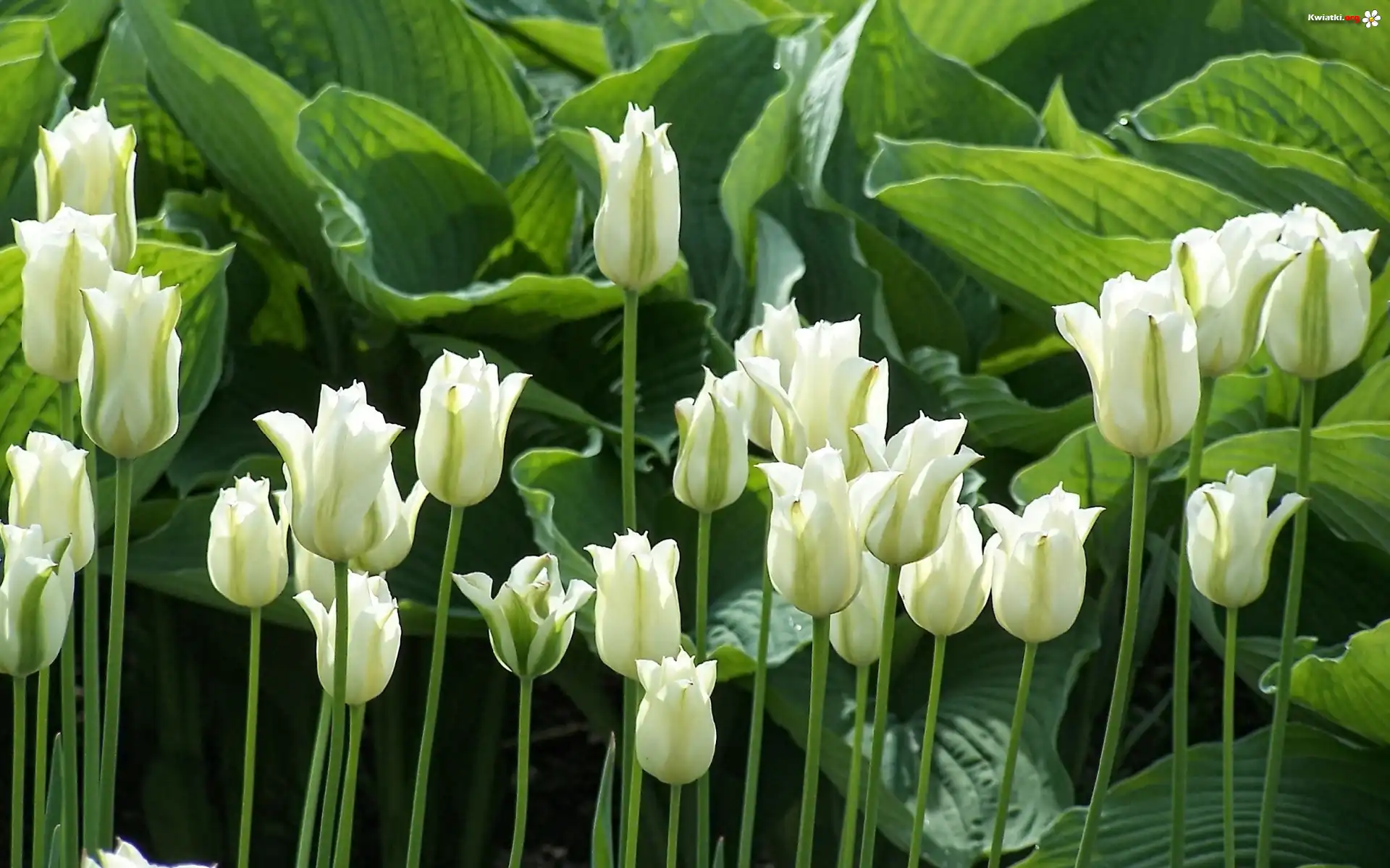 Kwiaty, Białe, Tulipany, Liście - Zdjęcia