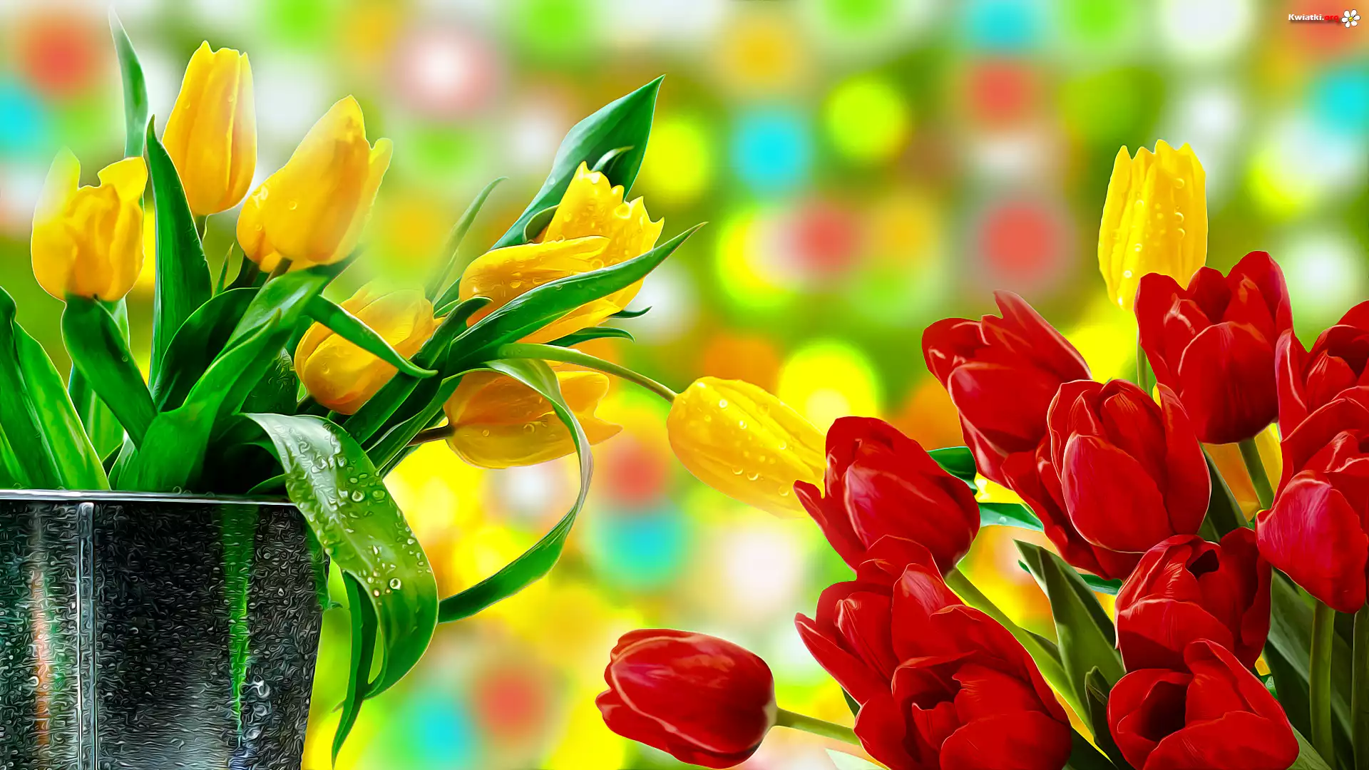 Kwiaty, Żółte, Czerwone, Tulipany, Grafika - Zdjęcia
