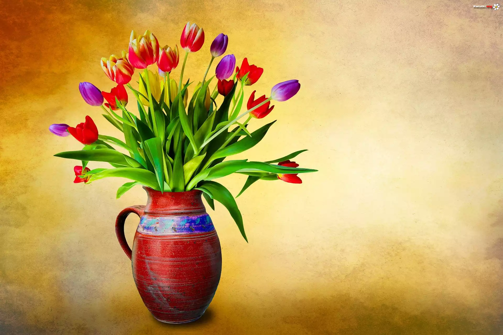 Kwiaty, Kolorowe, Tulipany, Dzbanek - Zdjęcia