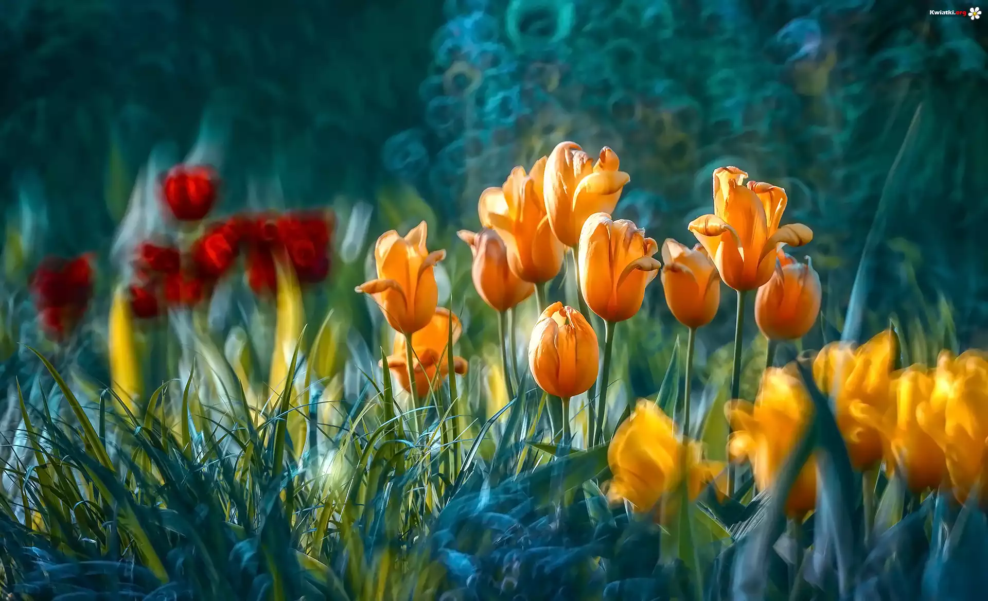 Kwiaty, Kolorowe, Tulipany, Rozmycie - Zdjęcia
