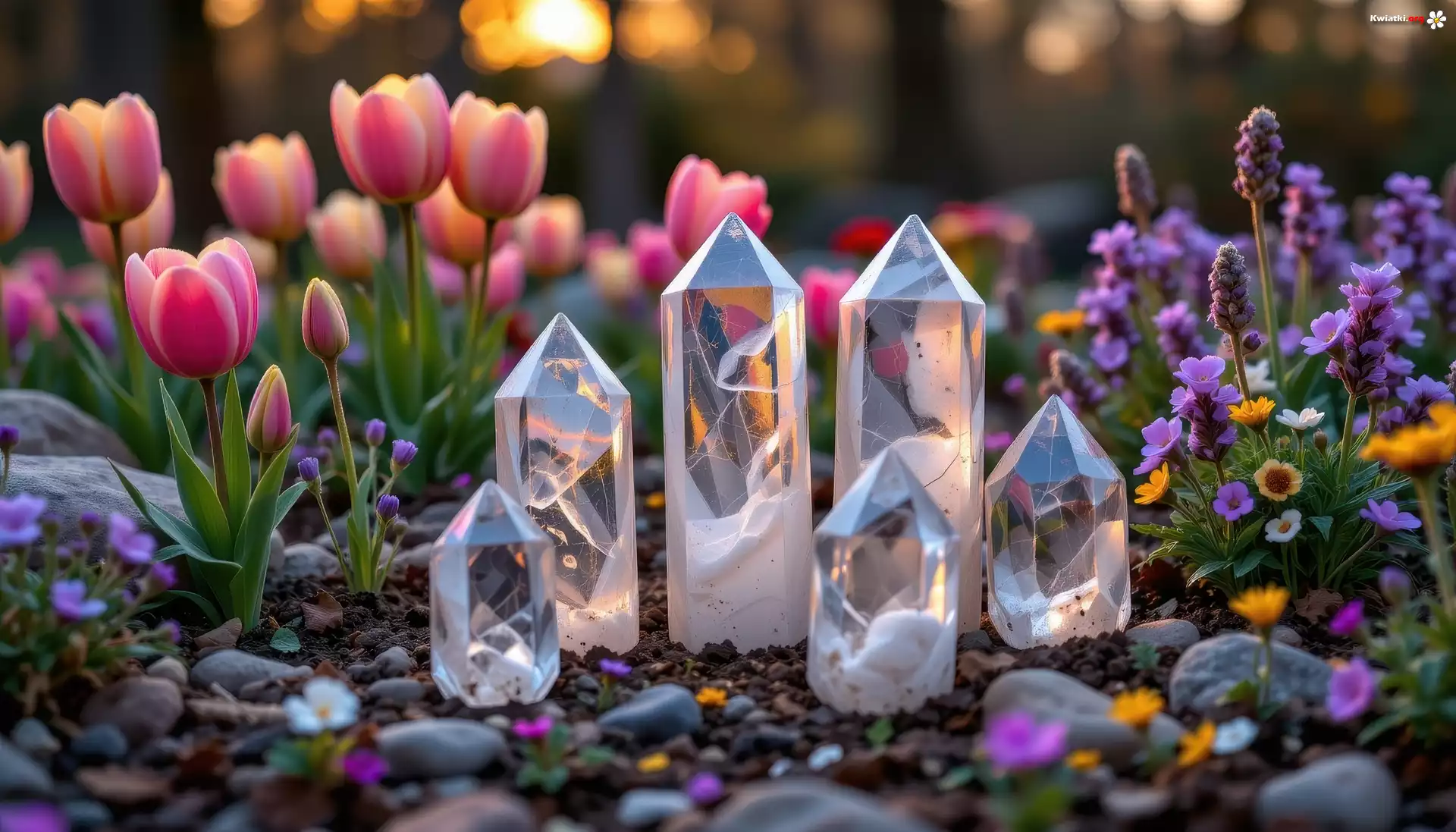 Kwiat Tulipany, Lawenda, Kryształy, Kwiaty