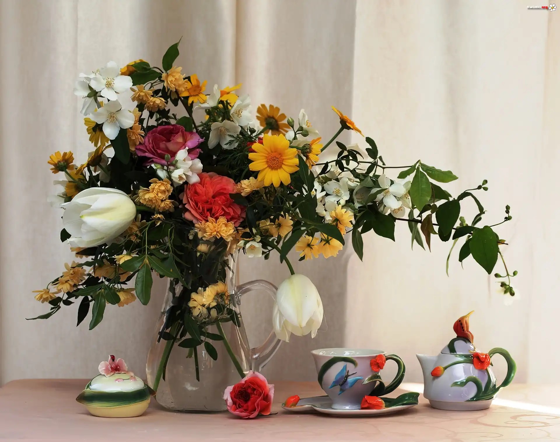 Kwiaty, Bukiet, Wazon, Filiżanka - Zdjęcia