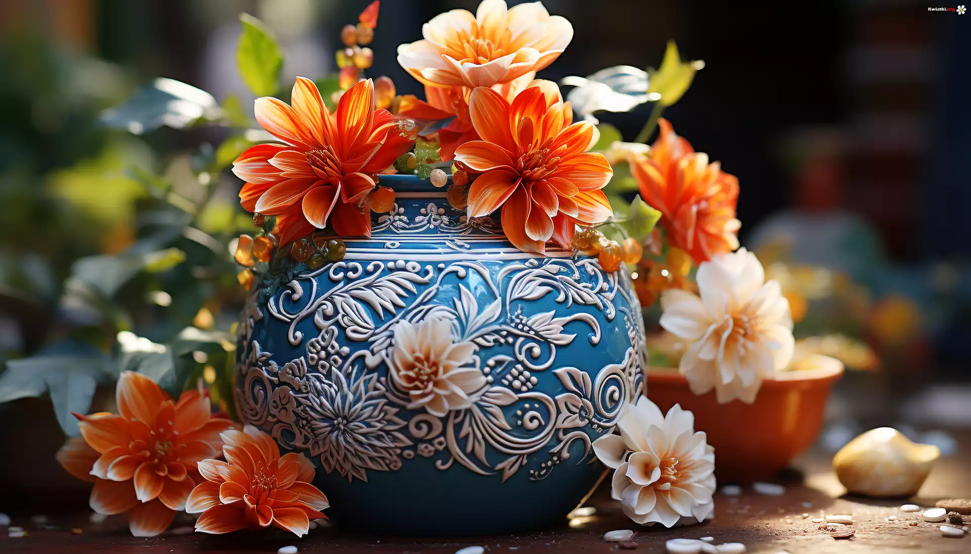 Kwiaty, Dalie, Wazon - Zdjęcia