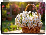 Białe, Kwiaty, Wiklinowy, Koszyk, AI - Zdjęcia