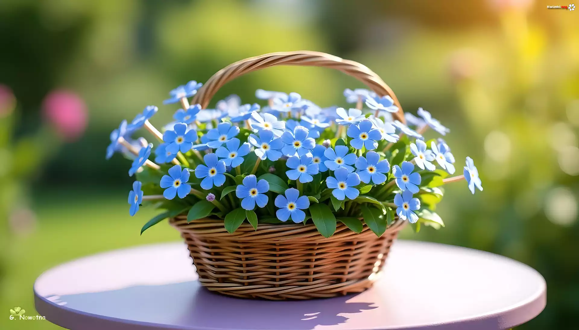 Niebieskie, Kwiaty, Wiklinowy, Koszyk, Grafika - Zdjęcia