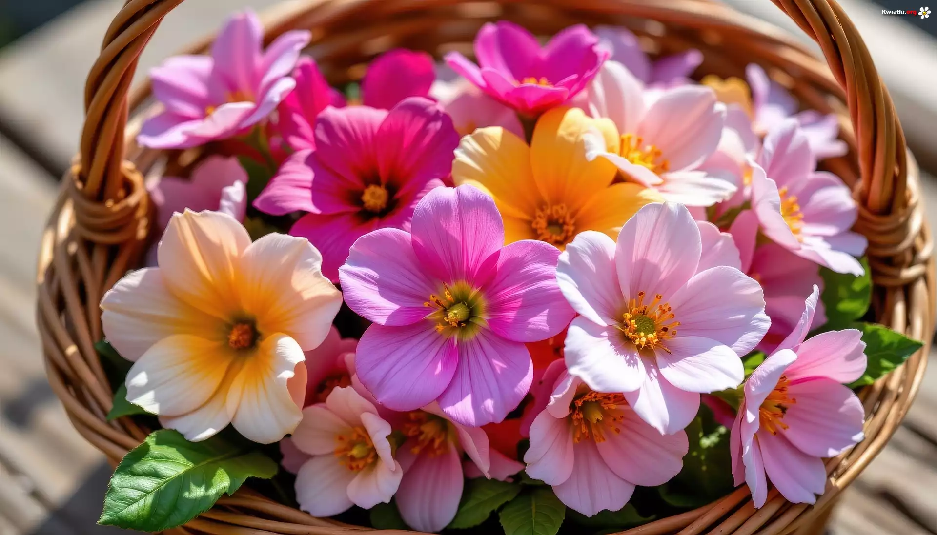 Różowe, Żółte, Kremowe, Kwiaty, Koszyk, Wiklinowy - Zdjęcia