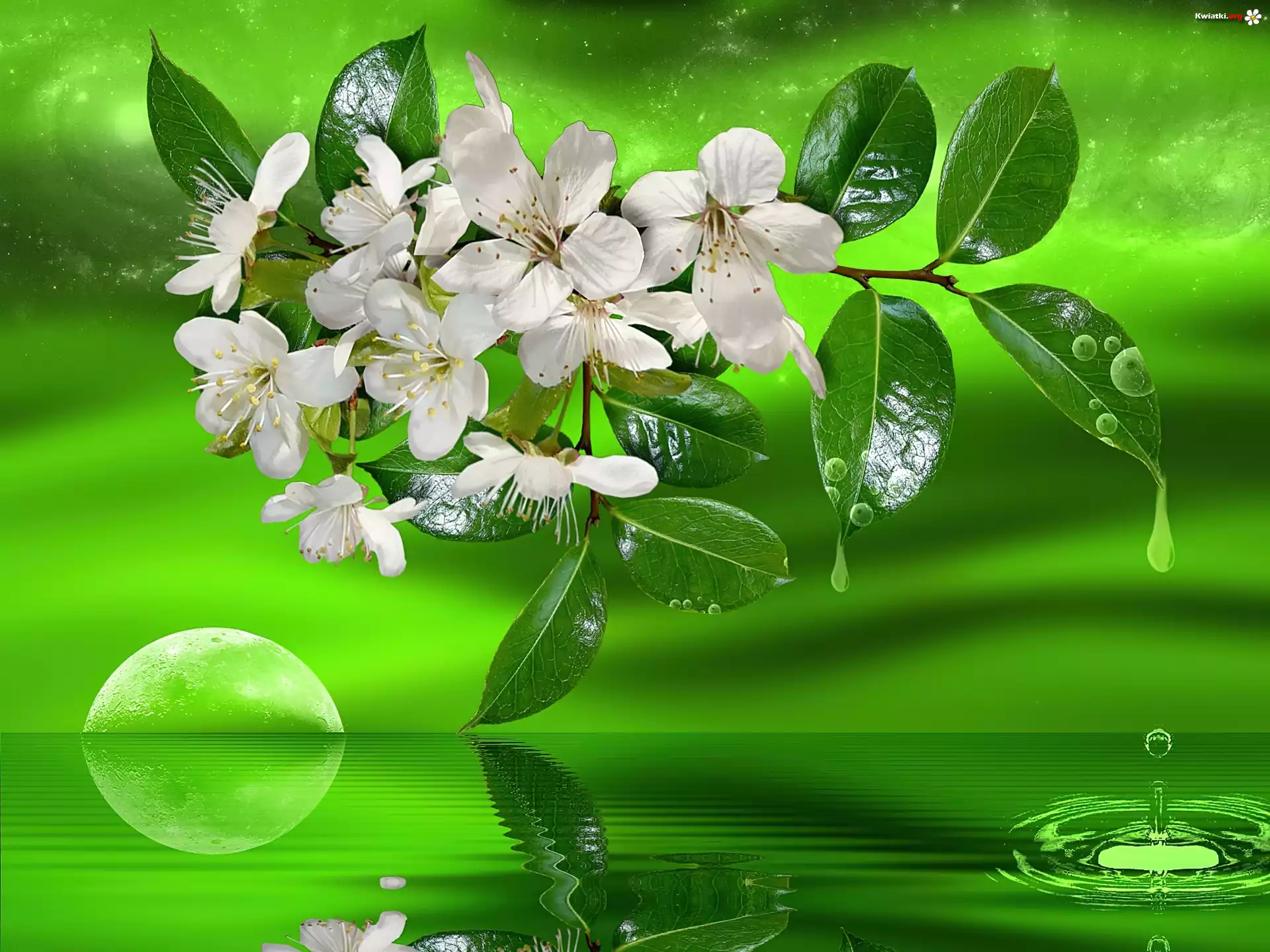 Kwiat Kwiaty, Owocowego, Drzewa, Woda, Odbicie