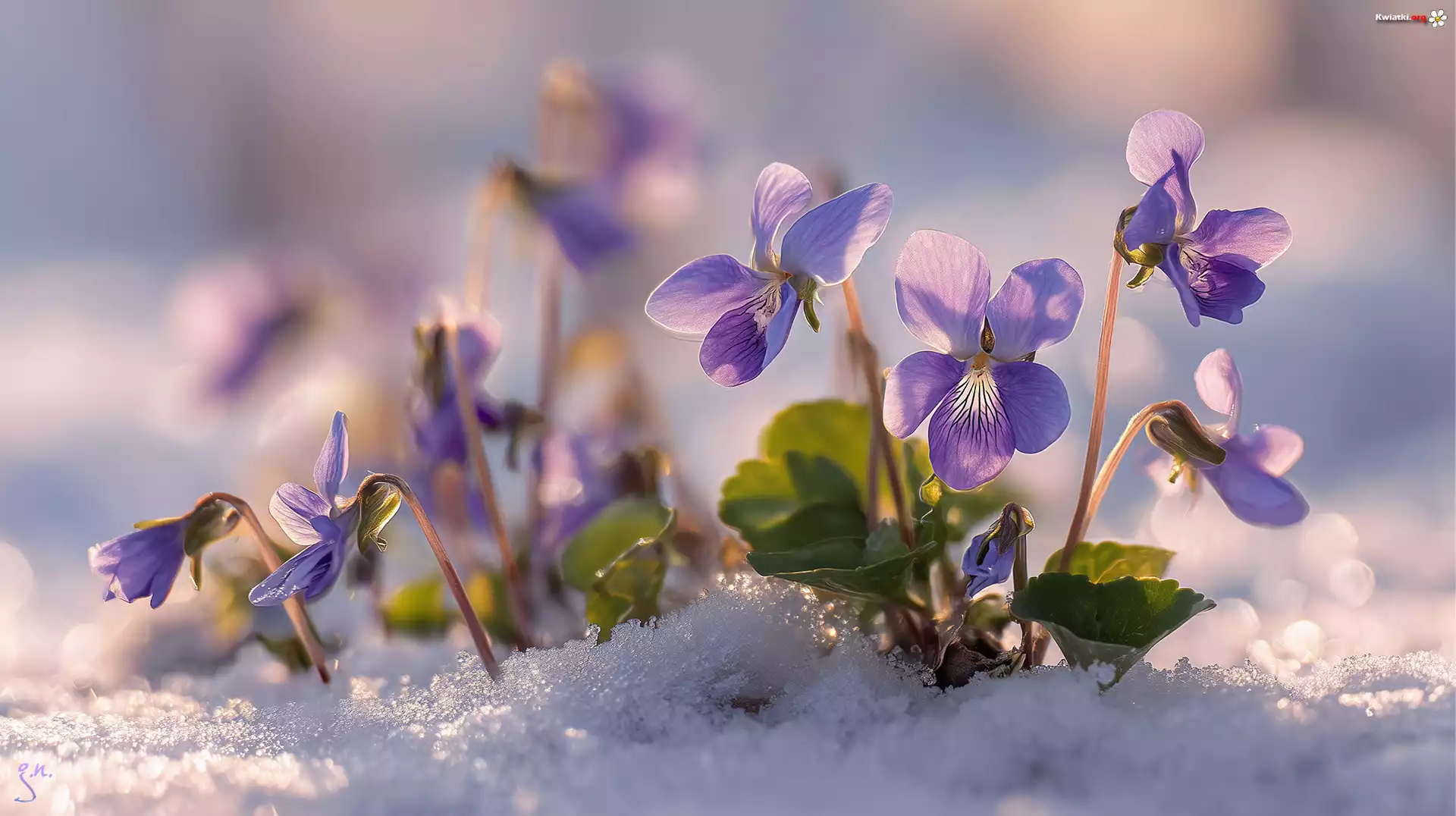 Kwiat Fioletowe, Fiołki wonne, Kwiaty, Śnieg, Grafika AI