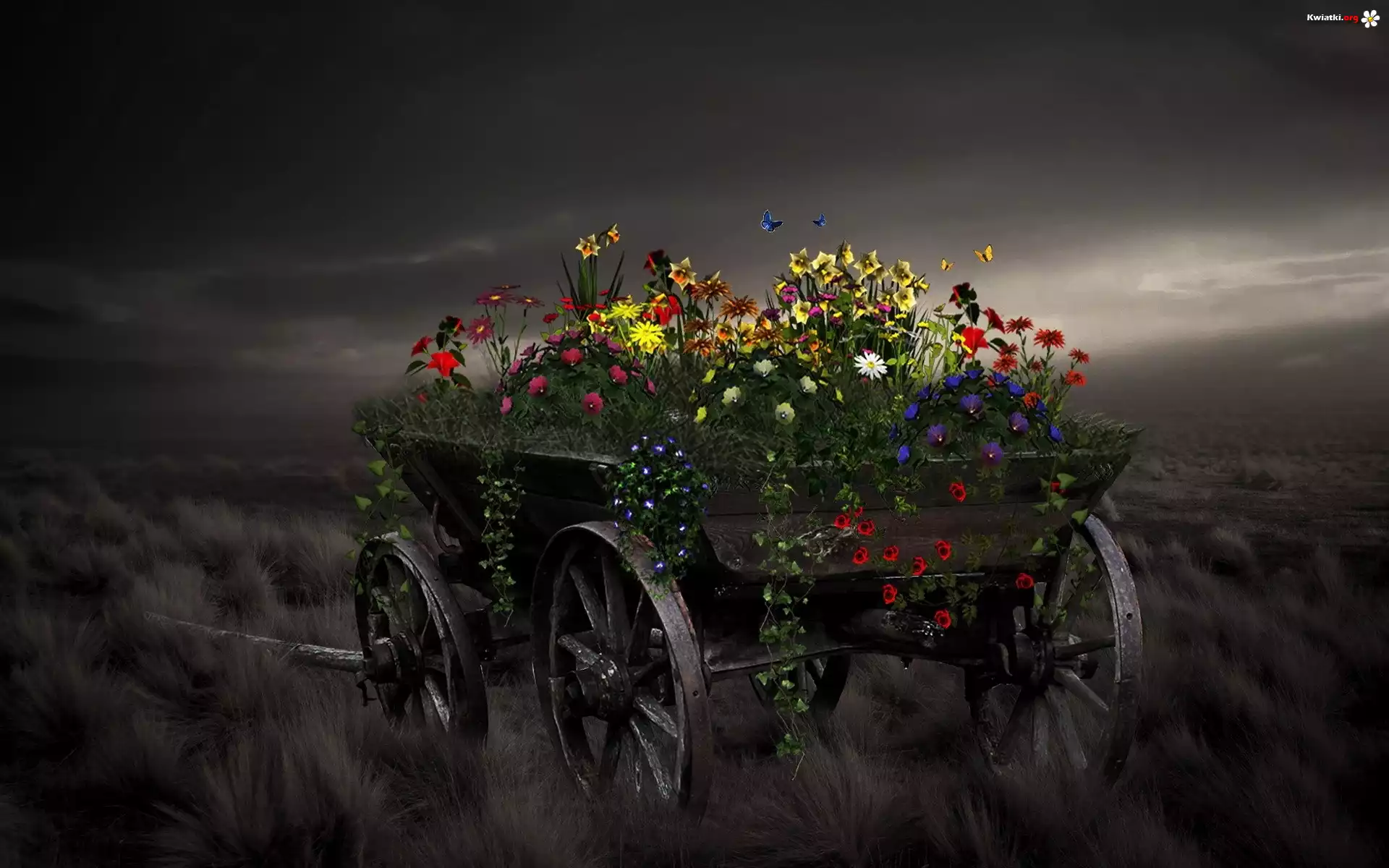 Wóz, Kwiaty, Motyle - Zdjęcia