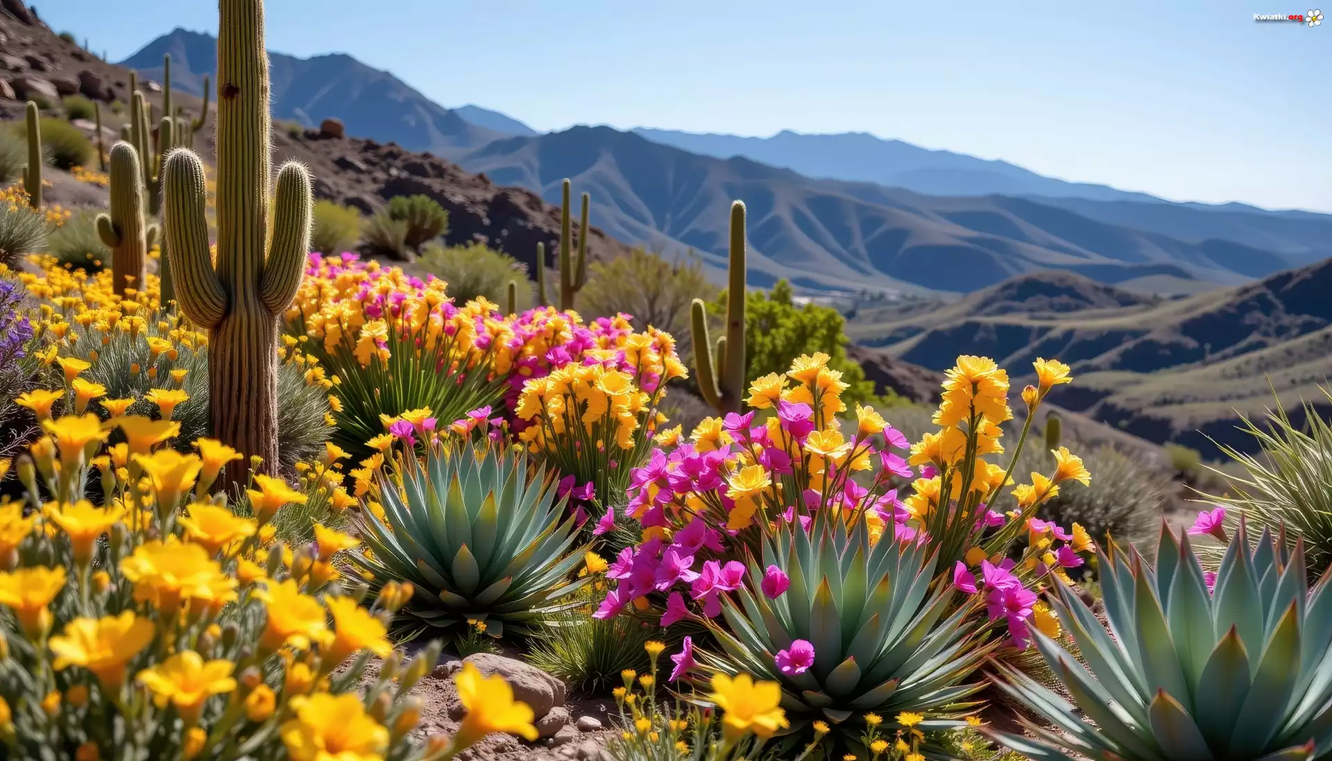 Kaktusy, Kwiaty, Wzgórze, Grafika AI - Zdjęcia