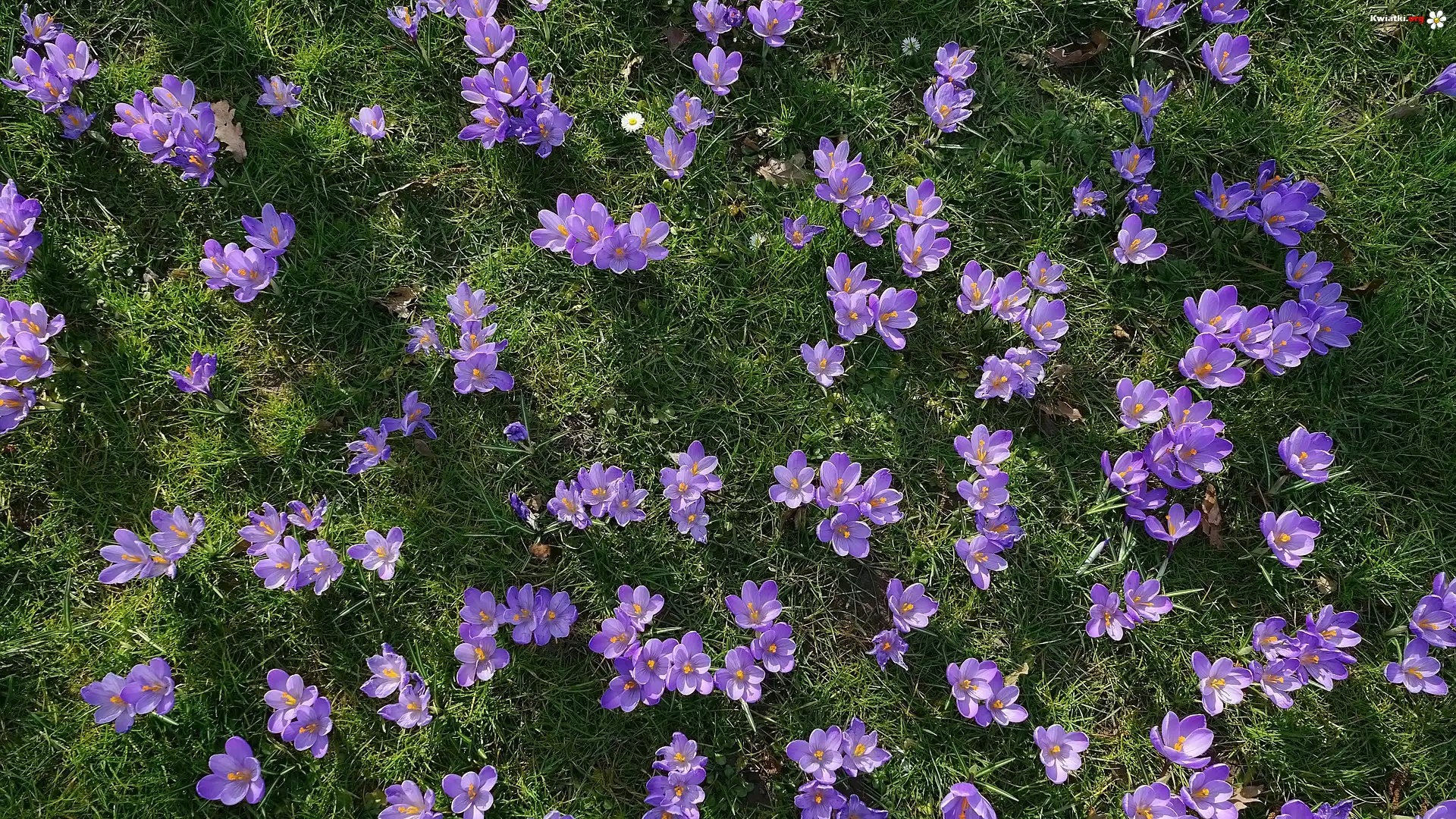 Kwiaty, Krokusy, Zielona, Trawa - Zdjęcia