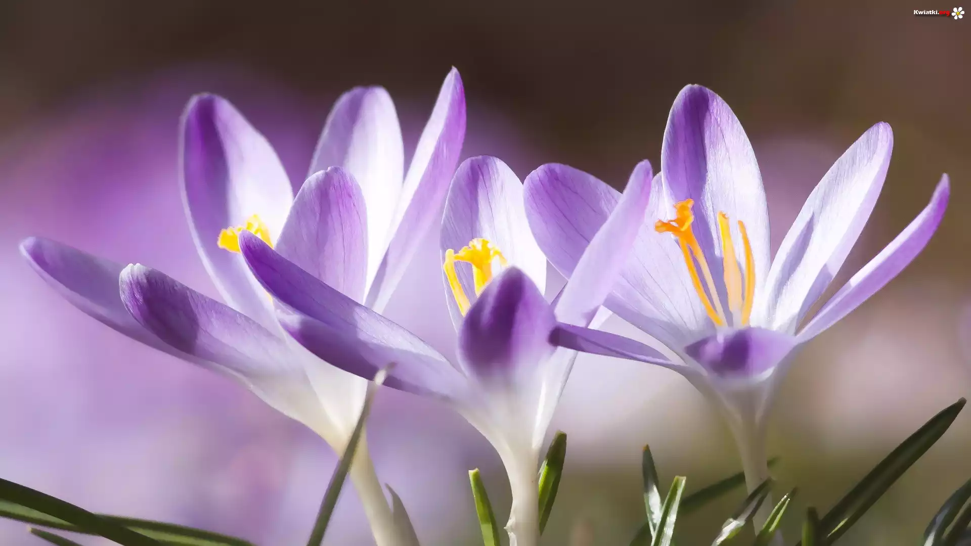 Kwiaty, Krokusy, Fioletowe, Zielone, Liście - Zdjęcia