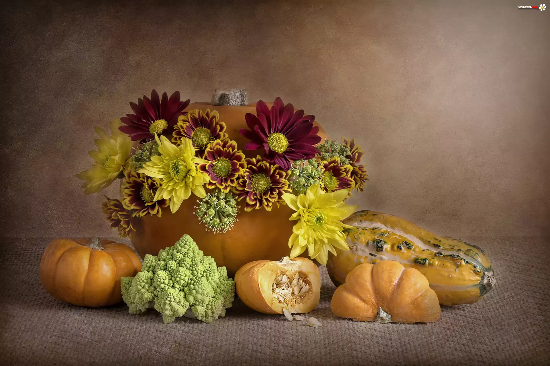 Kwiat Kwiaty, Chryzantemy, Dynie, Kalafior zielony, Romanesco
