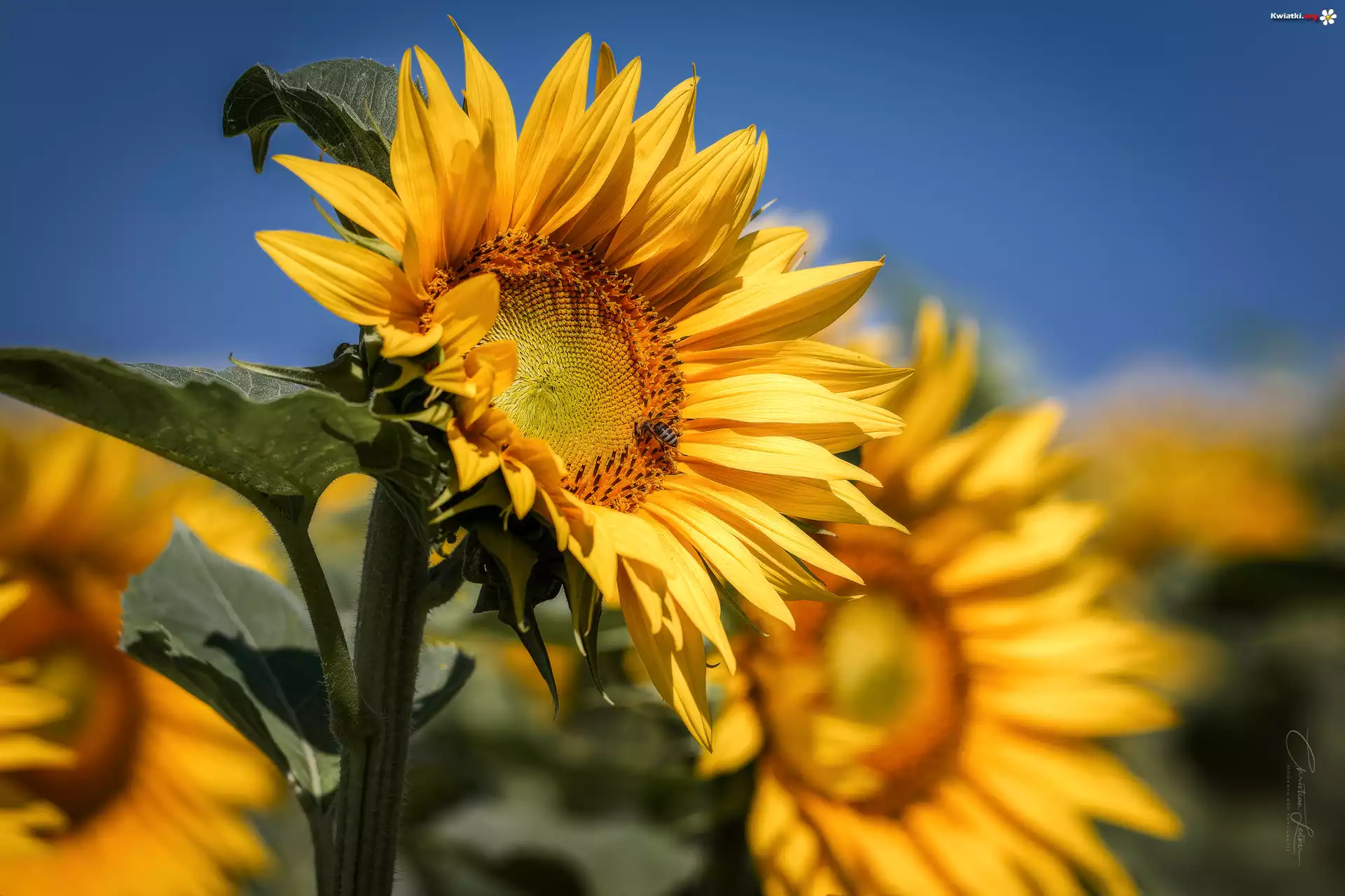 Lato, Kwiaty, Żółte, Pszczoła, Słonecznik - Zdjęcia