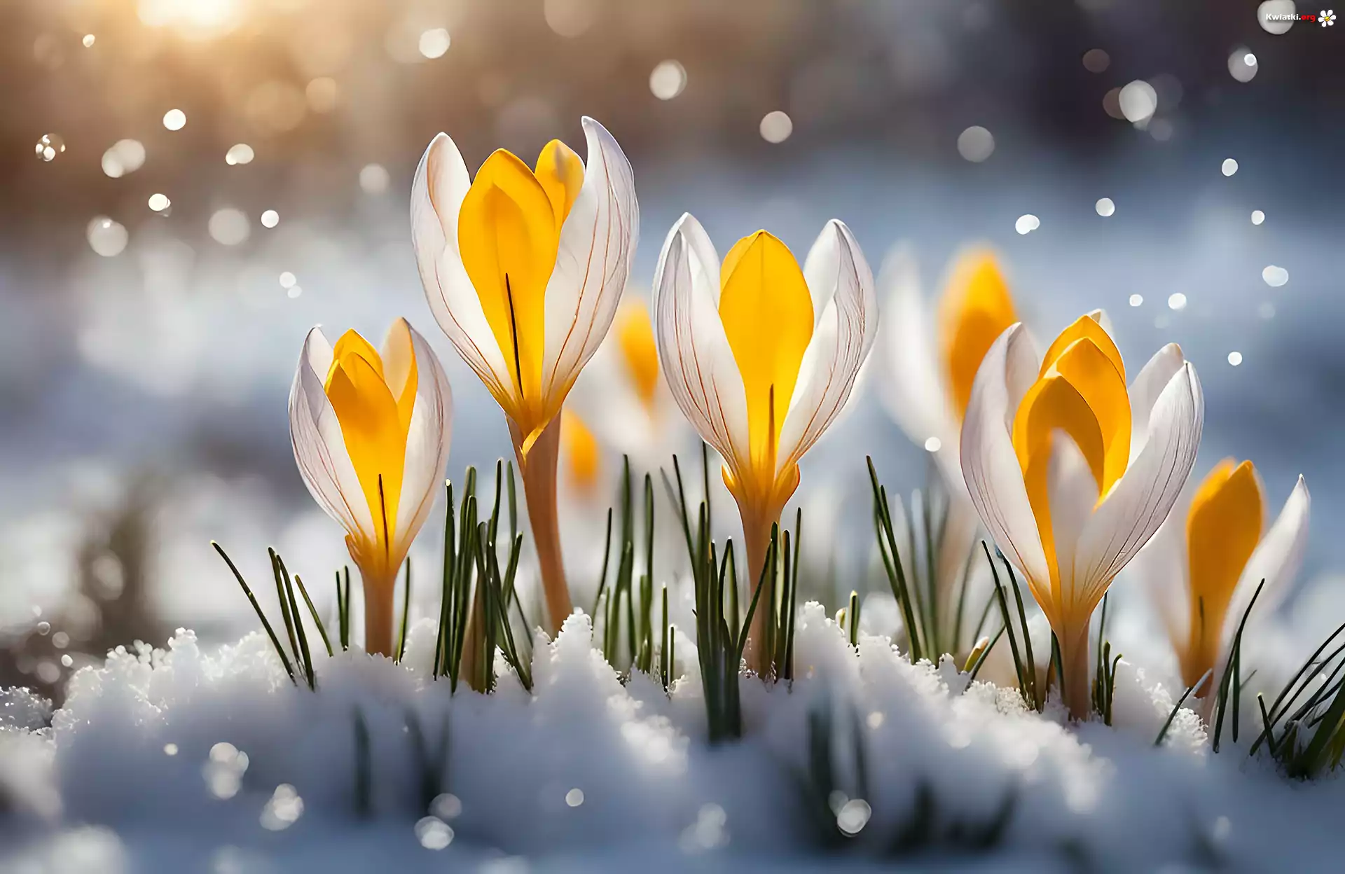 Kwiat Żółto-białe, Krokusy, Kwiaty