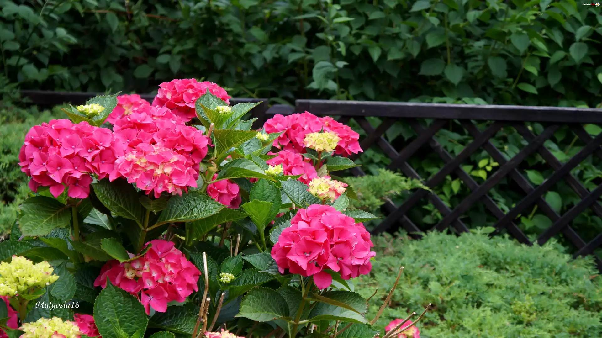 Kwitnąca, Różowa, Hortensja, Płot - Zdjęcia