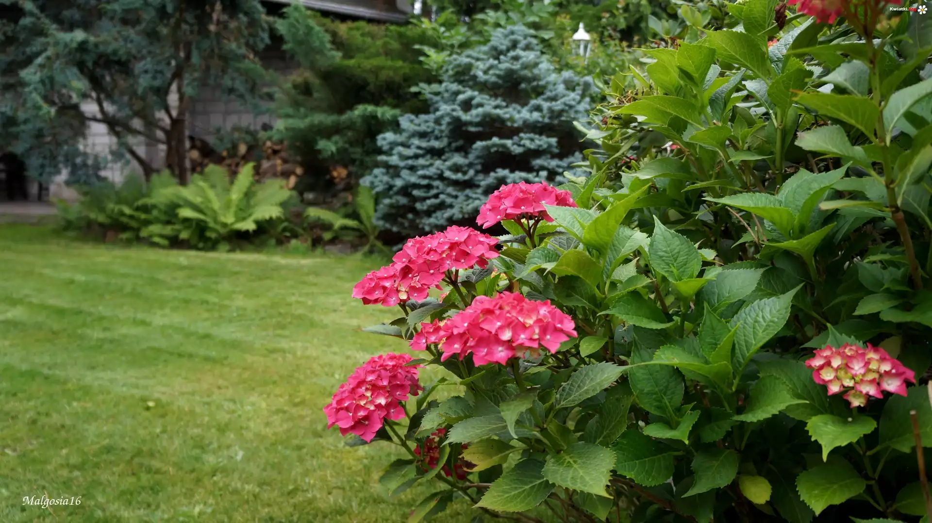 Kwitnąca, Różowa, Hortensja, Trawnik - Zdjęcia