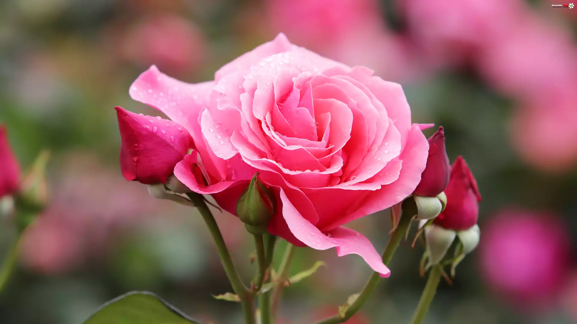 Kwitnąca, Różowa, Róża, Płatki, Pąki, Kropelki - Zdjęcia