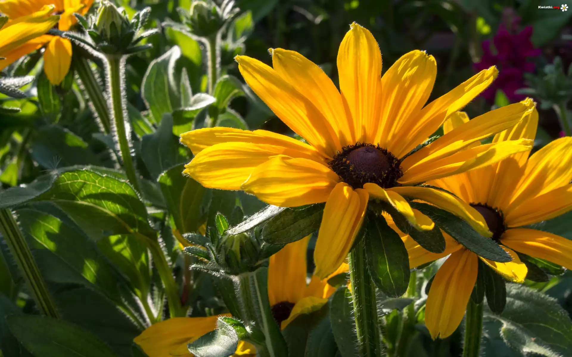 Kwiaty, Żółte, Rudbekia, Kwitnące - Zdjęcia
