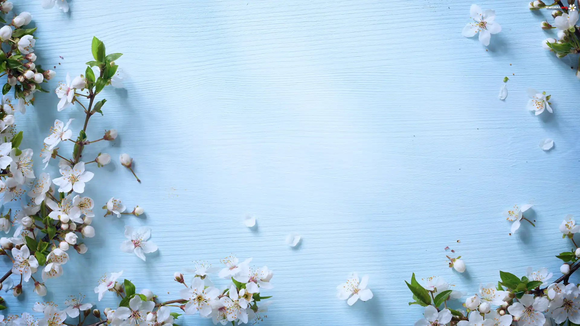 Kwitnące, Gałązki, Białe, Kwiaty, Niebieskie tło - Zdjęcia