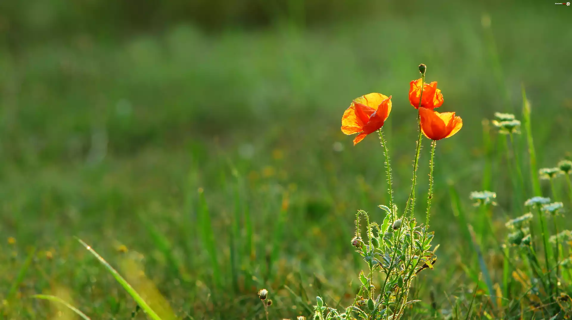 Kwiat Kwitnące, Maki, Łąka, Rozmyte tło